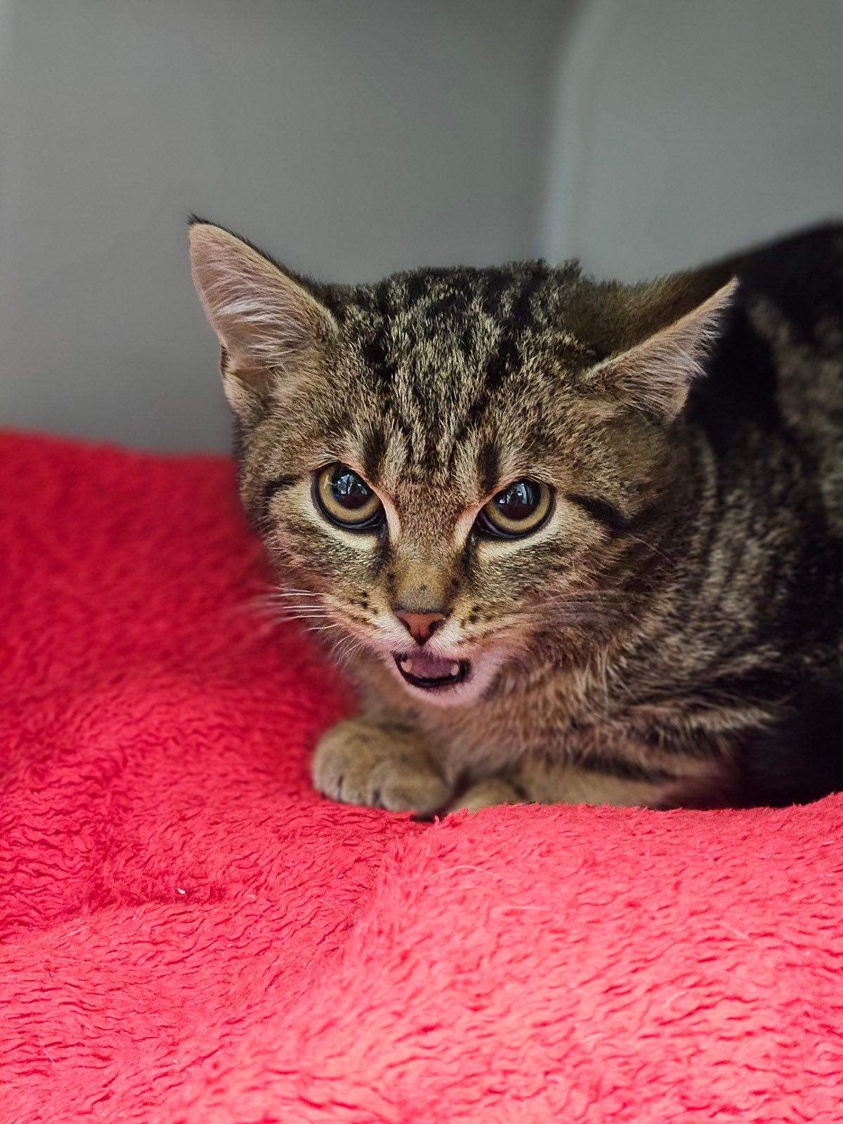 Babaloo to uroczy, mały jegomość o przepięknym pręgowaniu. Przyjechał do nas ze swoim bratem Labubu. Maluch do tej pory wychowywał się bez obecności człowieka co sprawia, że jeszcze nie do końca łapie kocio-ludzkie sprawy.