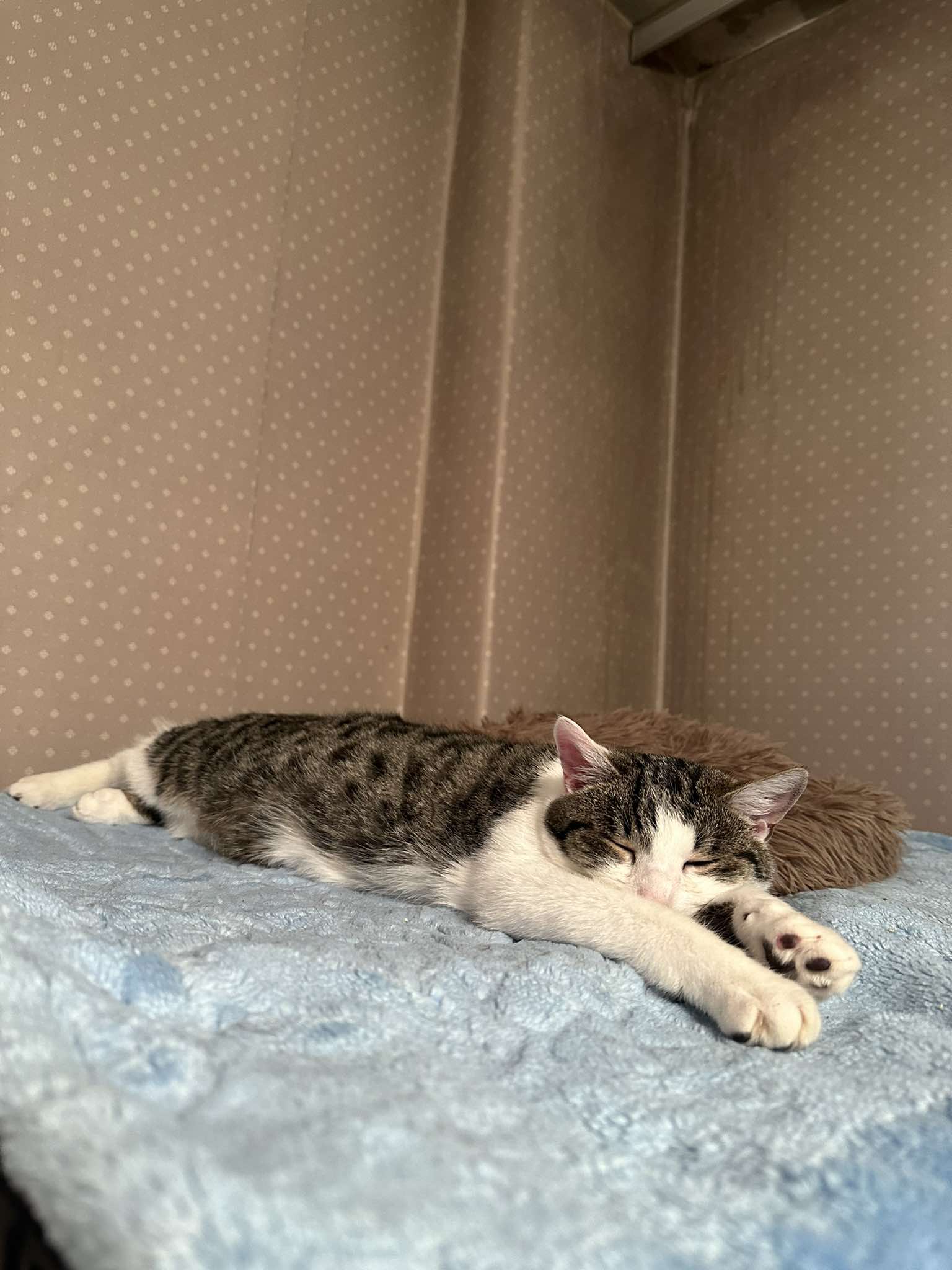 Spokojny, wyjątkowo dobrze dogaduje się z innymi kotami, początkowo ostrożny ale szybko przekonuje się do ludzi.