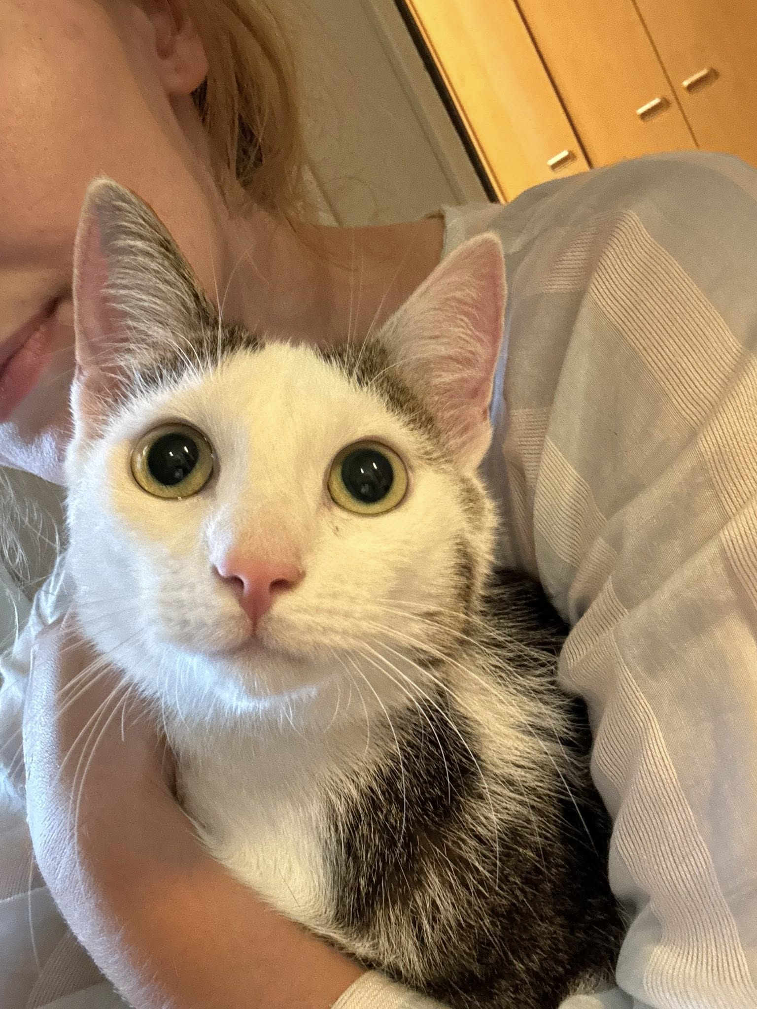 Zwrócony do kocińca ze względu na alergię domowników Kajon nadal wierzy, że znów wróci do domu… My też chcielibyśmy w to wierzyć, jednak od sierpnia nikt się nie zgłosił w jego sprawie. Kajon to kochany miziak, sam przychodzi na kolana, domaga się czułości, oswojony i łagodny. Uwielbia się bawić, a w szczególności aportować! Kocurek jest wykastrowany, załatwia się w kuwecie. Niestety obecnie nie rozumie co się stało. Jest zdezorientowany, wystarszony i przebodźcowany ilością kotów, przez co potrafi ugryźć znienacka. Nauczyliśmy się już rozpoznawać jego ostrzeżenia i wiemy, kiedy Kajon potrzebuje po prostu spokoju i przestrzeni.