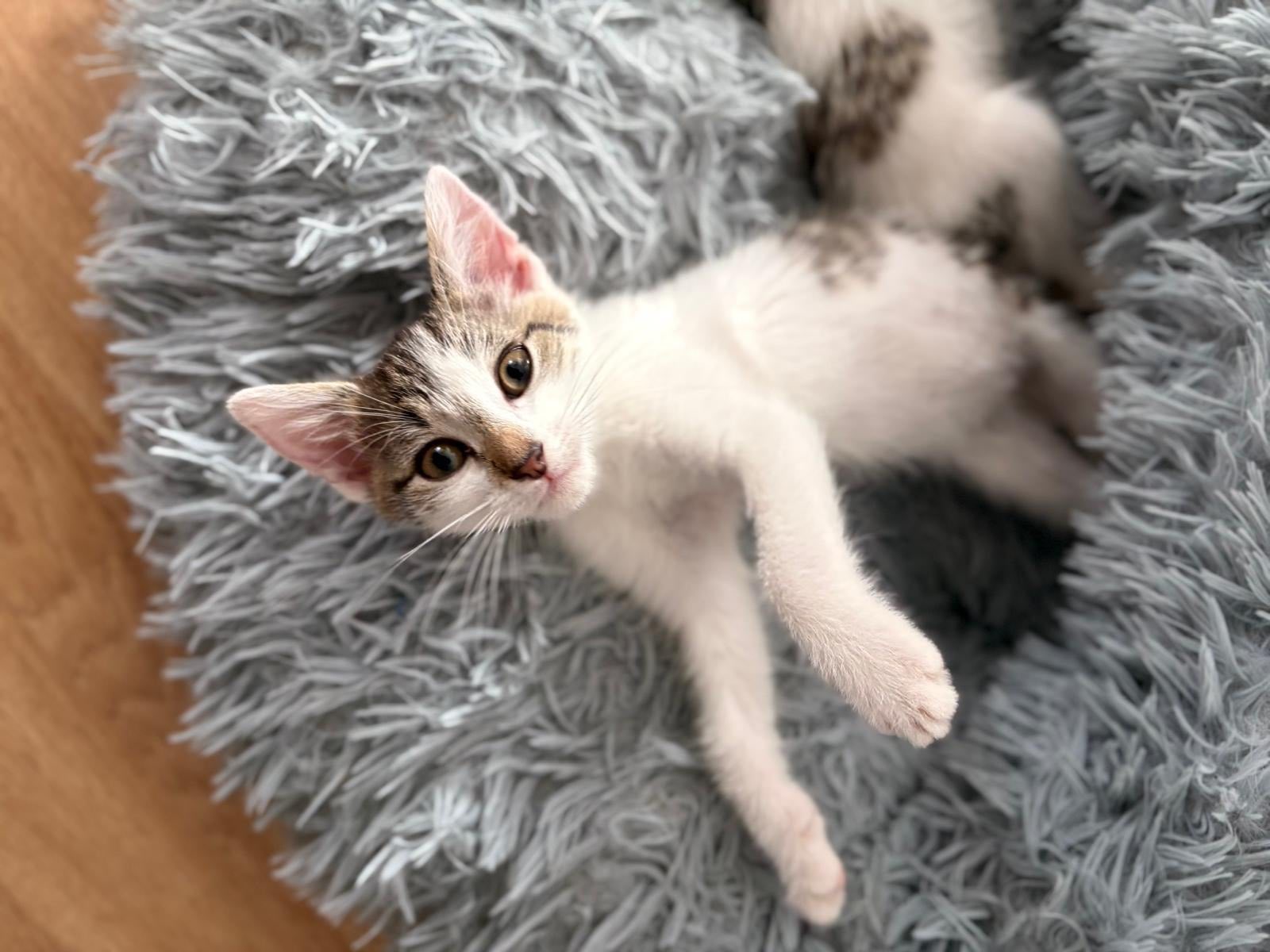 Domku szuka Koralik - jedyny chłopiec z 3 kociąt, których mama zginęła pod kołami samochodu. Chłopak urodził się, żeby kochać. Od pierwszego dnia pobytu u nas, kiedy on i rodzeństwo byli na świecie od około 5 tygodni, na widok człowieka porzucał zabawę z siostrami i domagał się uwagi i brania na ręce.