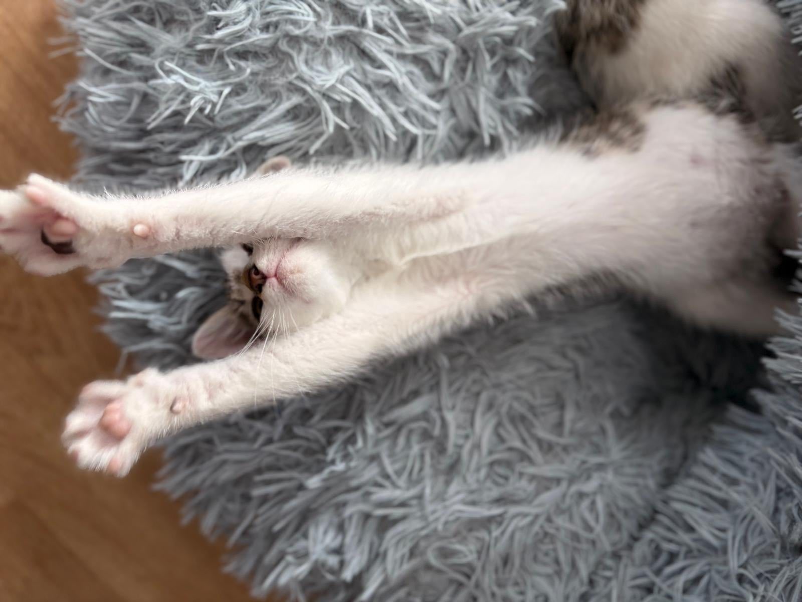 Koralik jest kocurkiem bardzo żywiołowym i ciekawskim, który z pewnością wprowadzi do nowego domu dużo energii, będzie zwiedzał każdy kąt i wchodzić na najwyższe możliwe punkty. Za to aby odpocząć chętnie zajmie ręce albo kolana swojego człowieka.