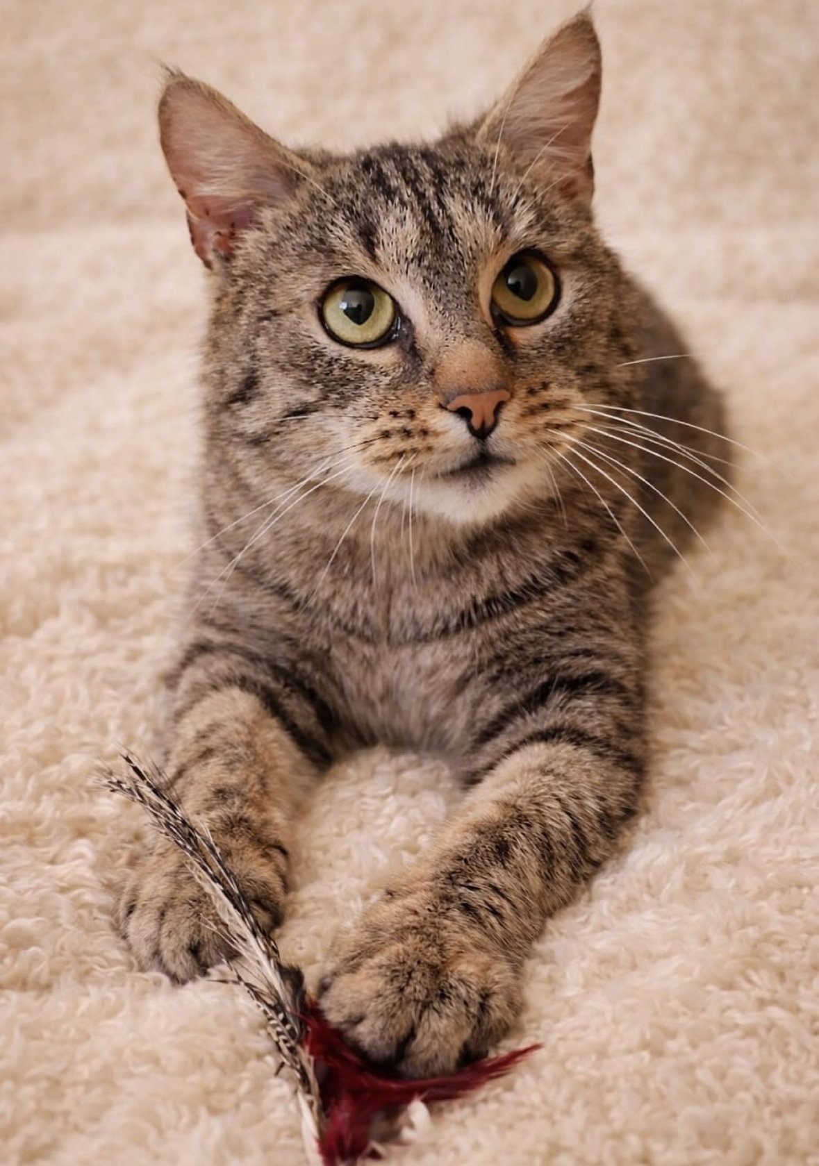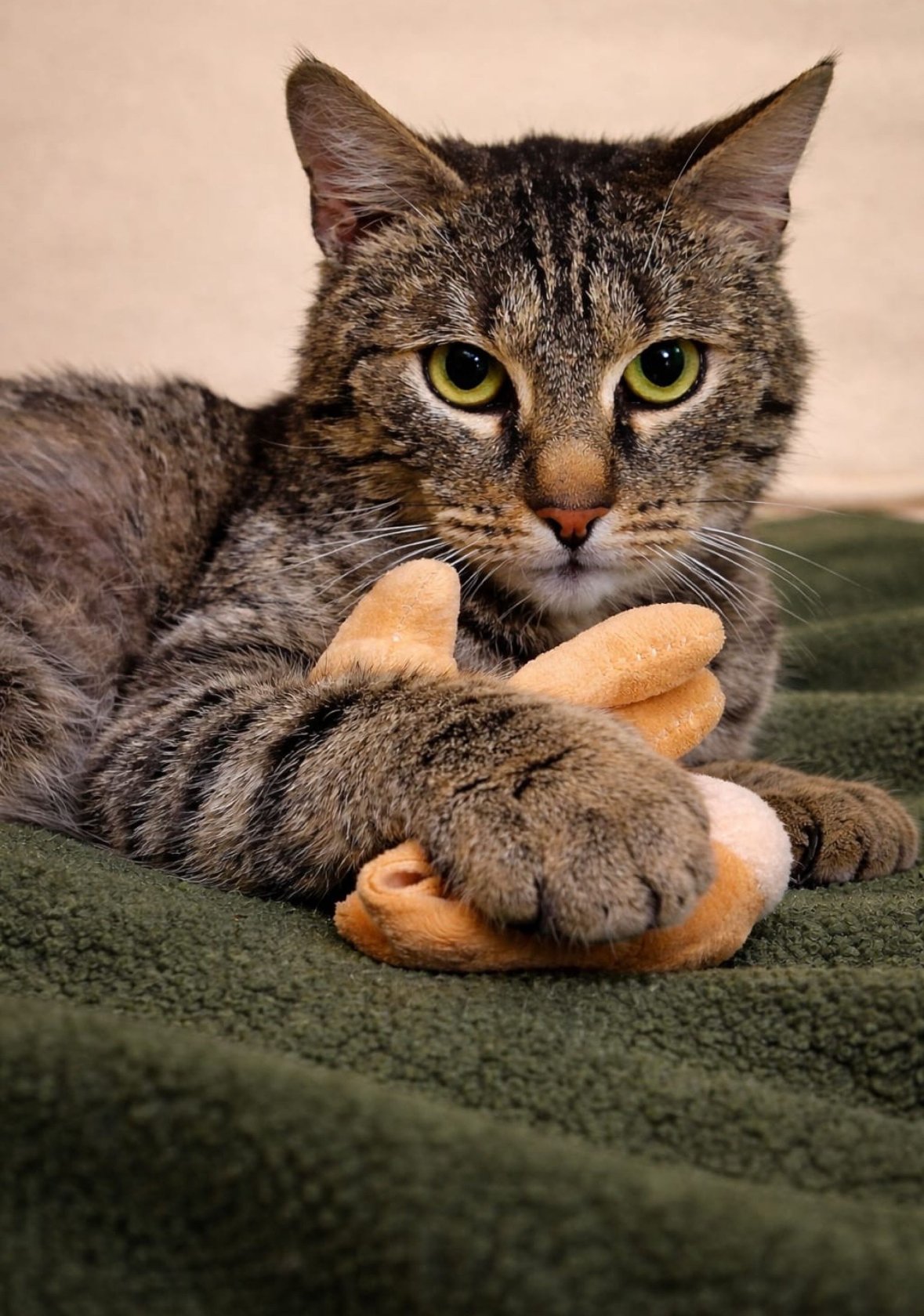 - kanapowiec, spokojny, uwielbia zabawę, lubi głaskanie, sterylizowany/kastrowany, posiada aktualne szczepienia
