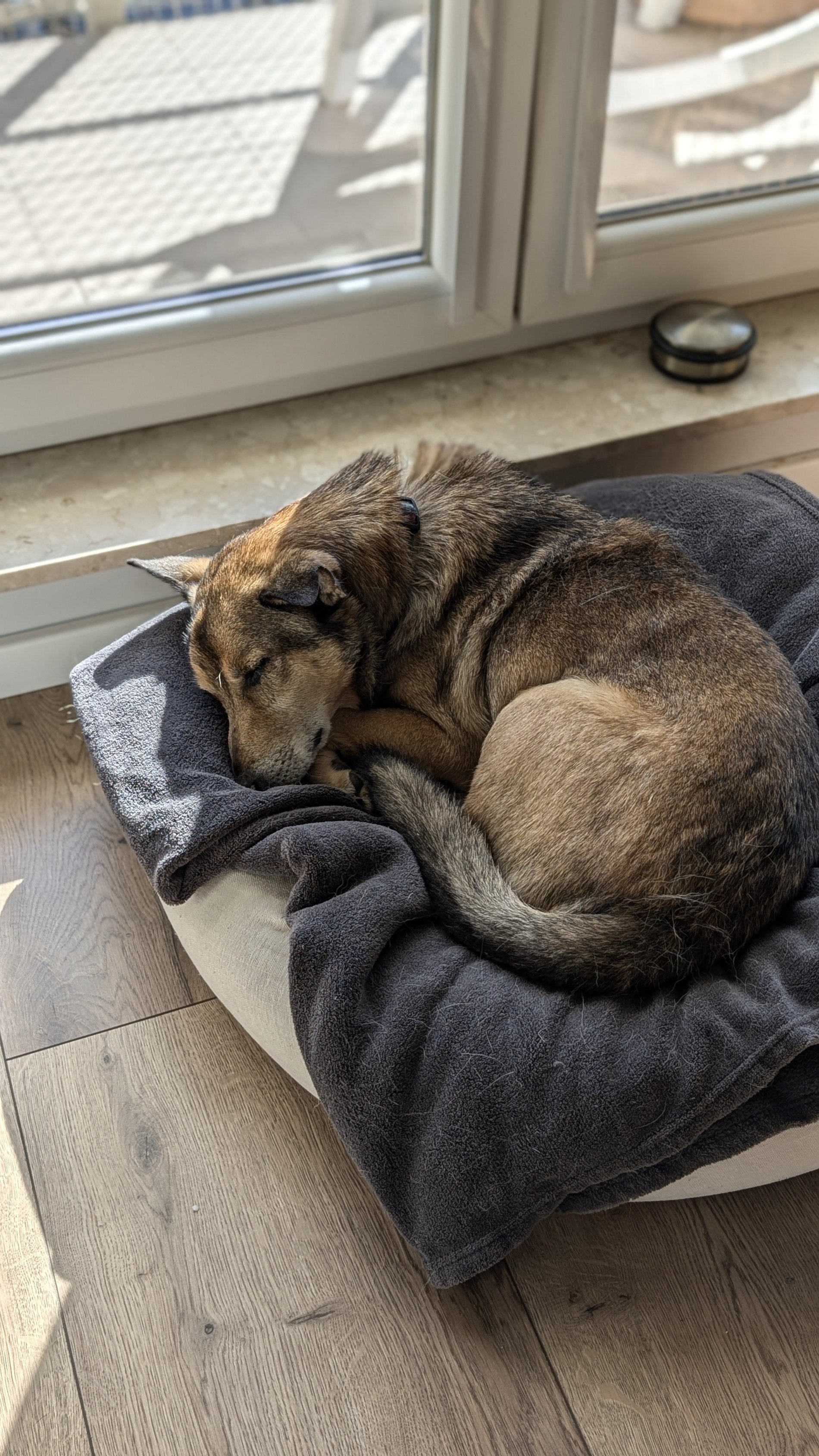 Bobbi to piesek przywieziony z Ukrainy, jest u nas już długo (2 lata). Jest spokojny, choć potrzebuje dłuższej chwili, żeby zaufać nowemu człowiekowi. Nie ma problemu z zostawianiem samemu, nie hałasuje, nie niszczy, zachowuje czystość.