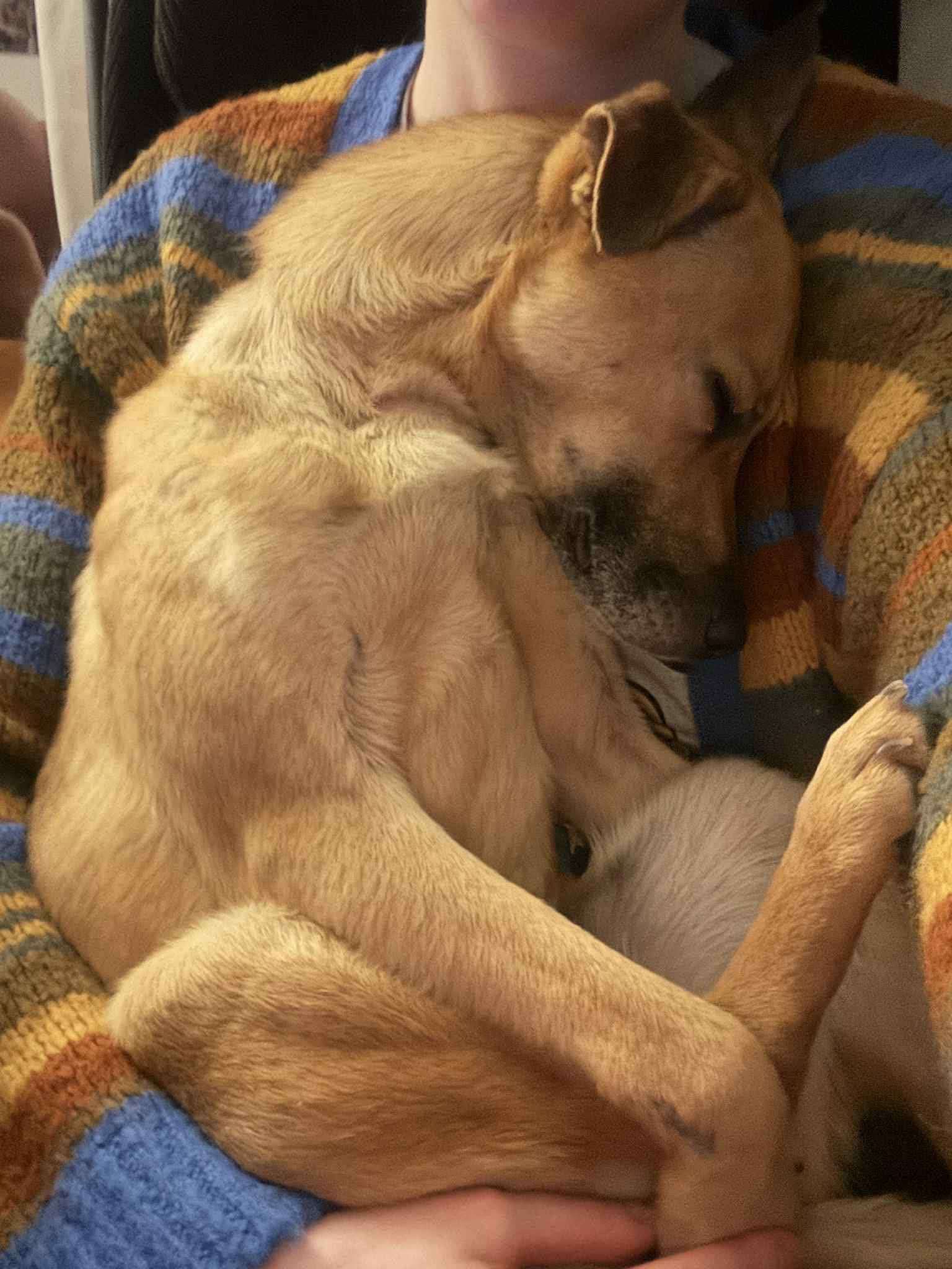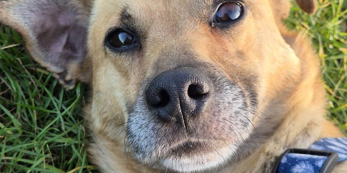 W domu tymczasowym na drugie imię dostał „Przylepa”, bo ciężko go odkleić od siebie - te smutne oczy sprawiają, że nie można przestać go przytulać.