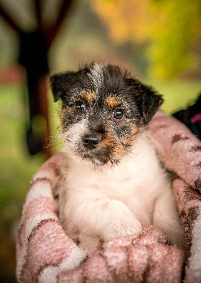 Maluchy mają około 8 tygodni i są pełne życia, ciekawości i radości. Ich szorstkowłosa sierść dodaje im uroku, a energiczne spojrzenia zdradzają wesołe, odważne dusze. Dorosną prawdopodobnie do około 10 kg – idealny rozmiar do wspólnego życia w mieszkaniu lub domu z ogrodem. Kochają kontakt z człowiekiem i z każdym dniem coraz bardziej otwierają serduszka.
