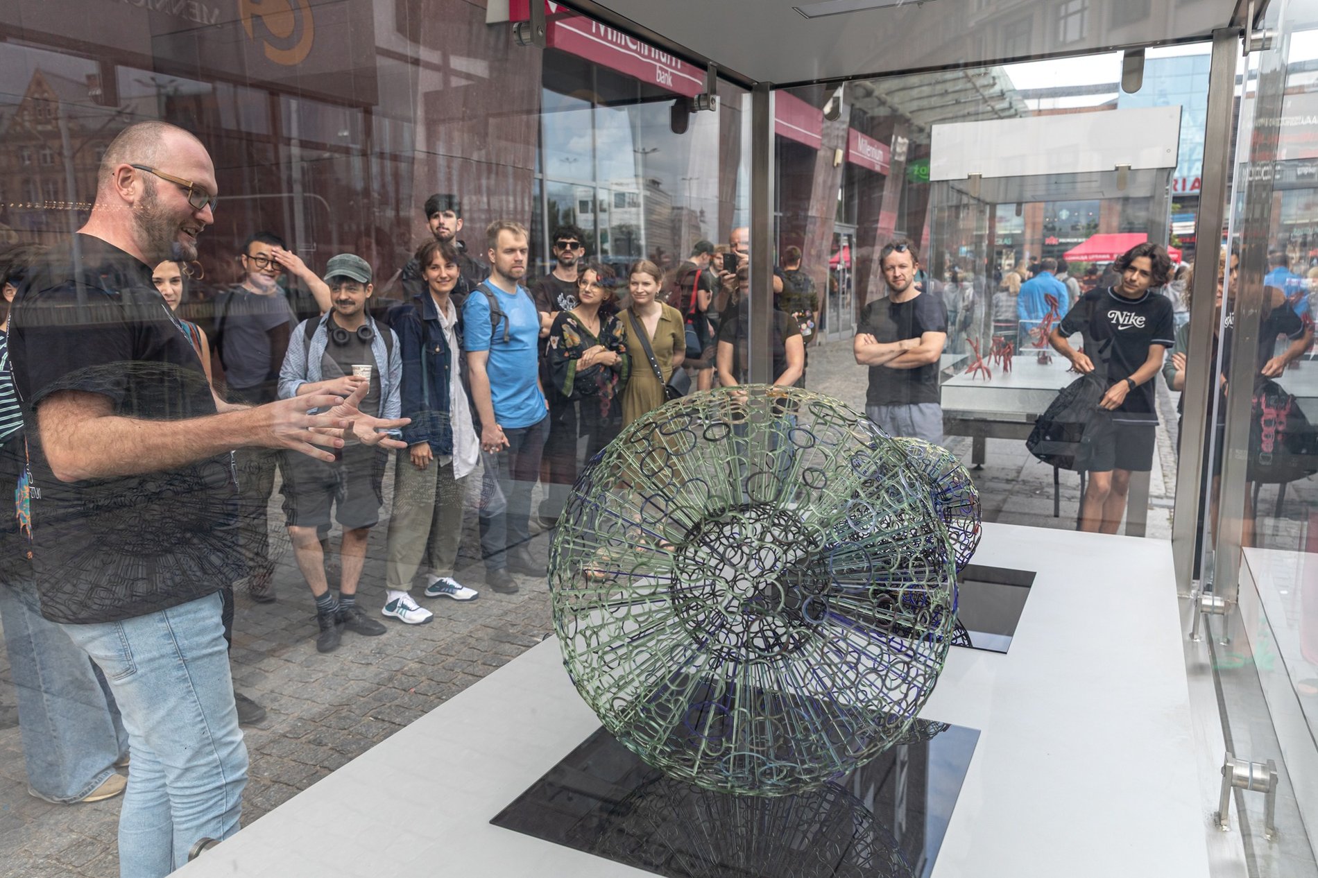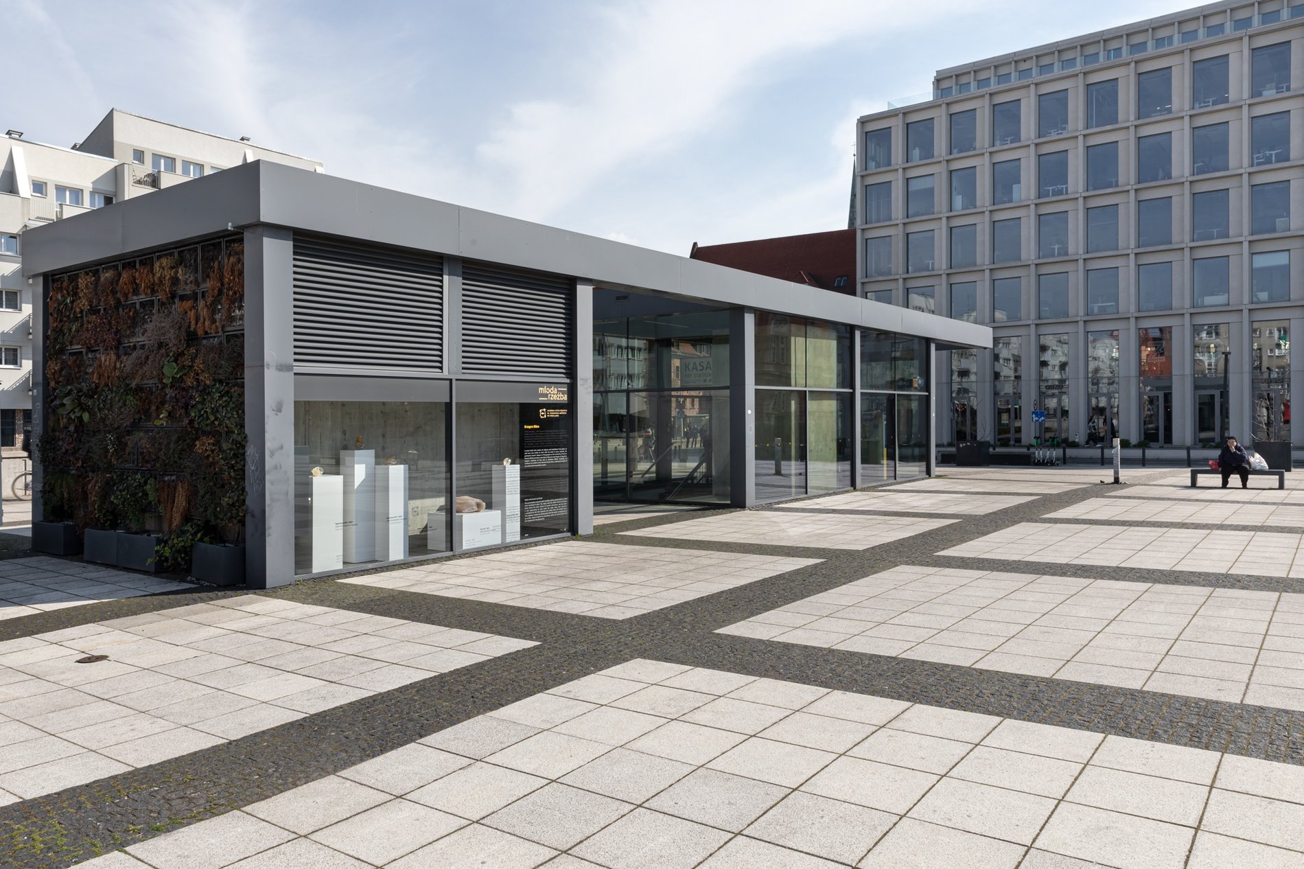 W 2022 roku przy ruchliwej ulicy Oławskiej stanęły pierwsze prototypowe, mobilne gabloty wystawiennicze. Zaprojektowane przez prof. Piotra Jędrzejewskiego, te niewielkie, szklane boksy podświetlane fotowoltaiką nie wymagają podłączenia do prądu.
