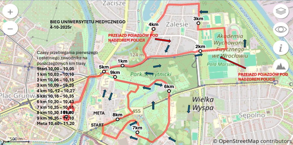 – Przebiegniemy przez Most Szczytnicki w stronę Stadionu Olimpijskiego, później wokół Zalesia, przez Park Szczytnicki, Pergolę obok Hali Stulecia do ulicy Mickiewicza, na której skręcimy ponownie do Parku Szczytnickiego, a stąd przez ulice Kopernika i Kochanowskiego wrócimy przez Most Szczytnicki i ulicę Pasteura na teren Uniwersytetu Medycznego – wylicza prof. Tomasz Zatoński. – Czekają na nas malownicze, zielone tereny, idealne do tej formy rekreacji.