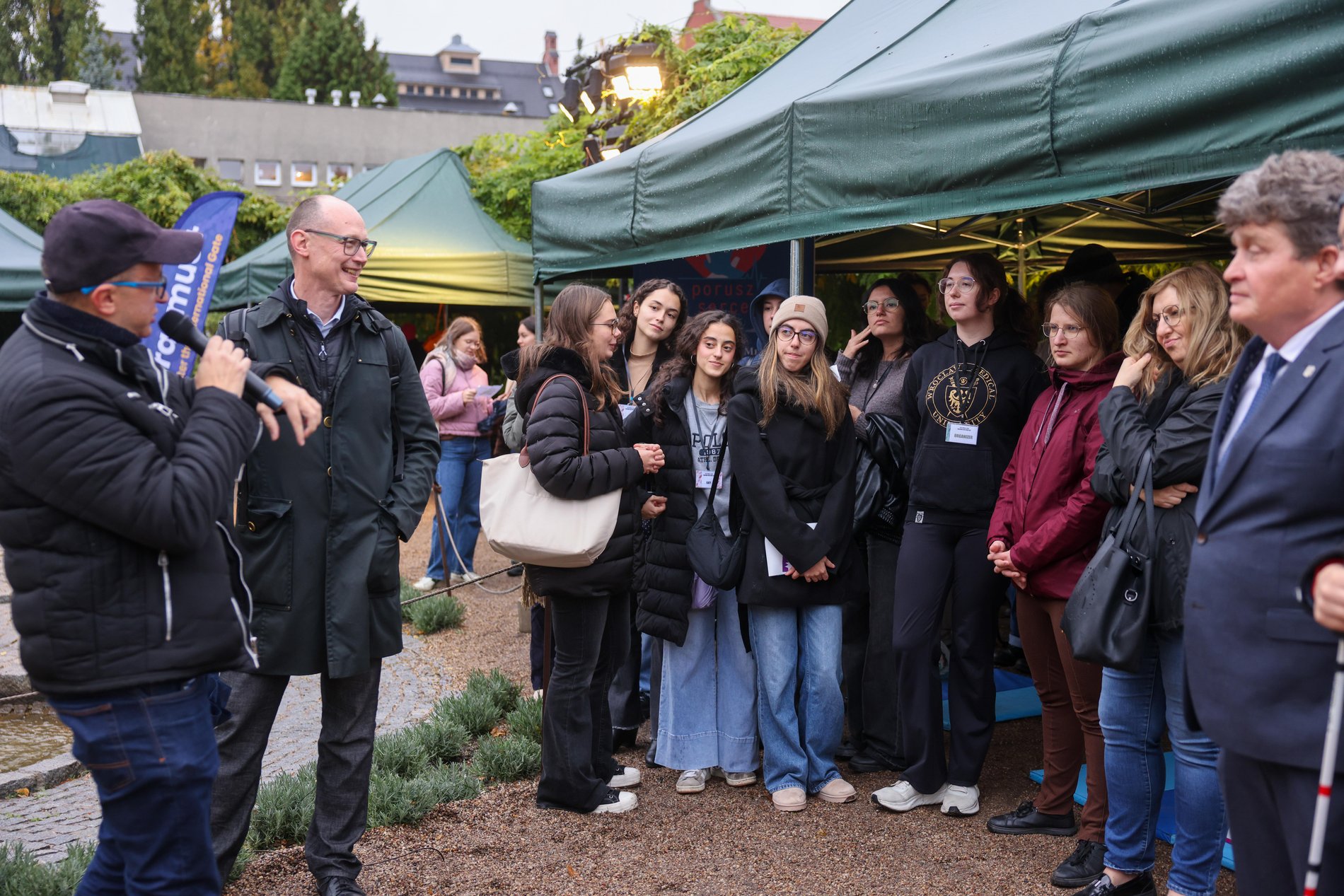 Fatalna pogoda nie odstraszyła wczoraj studentów, którzy licznie przybyli do Ogrodu Botanicznego! Na wstępie zostali powitani przez Ryszarda Kesslera, wiceprezydenta Wrocławia, który życzył im owocnej pracy i dobrej zabawy we Wrocławiu. Podczas oficjalnego otwarcia była obecna również dyrekcja Biura Współpracy z Uczelniami Wyższymi - Wrocławskiego Centrum Akademickiego oraz Biura Współpracy z Zagranicą Urzędu Miejskiego.