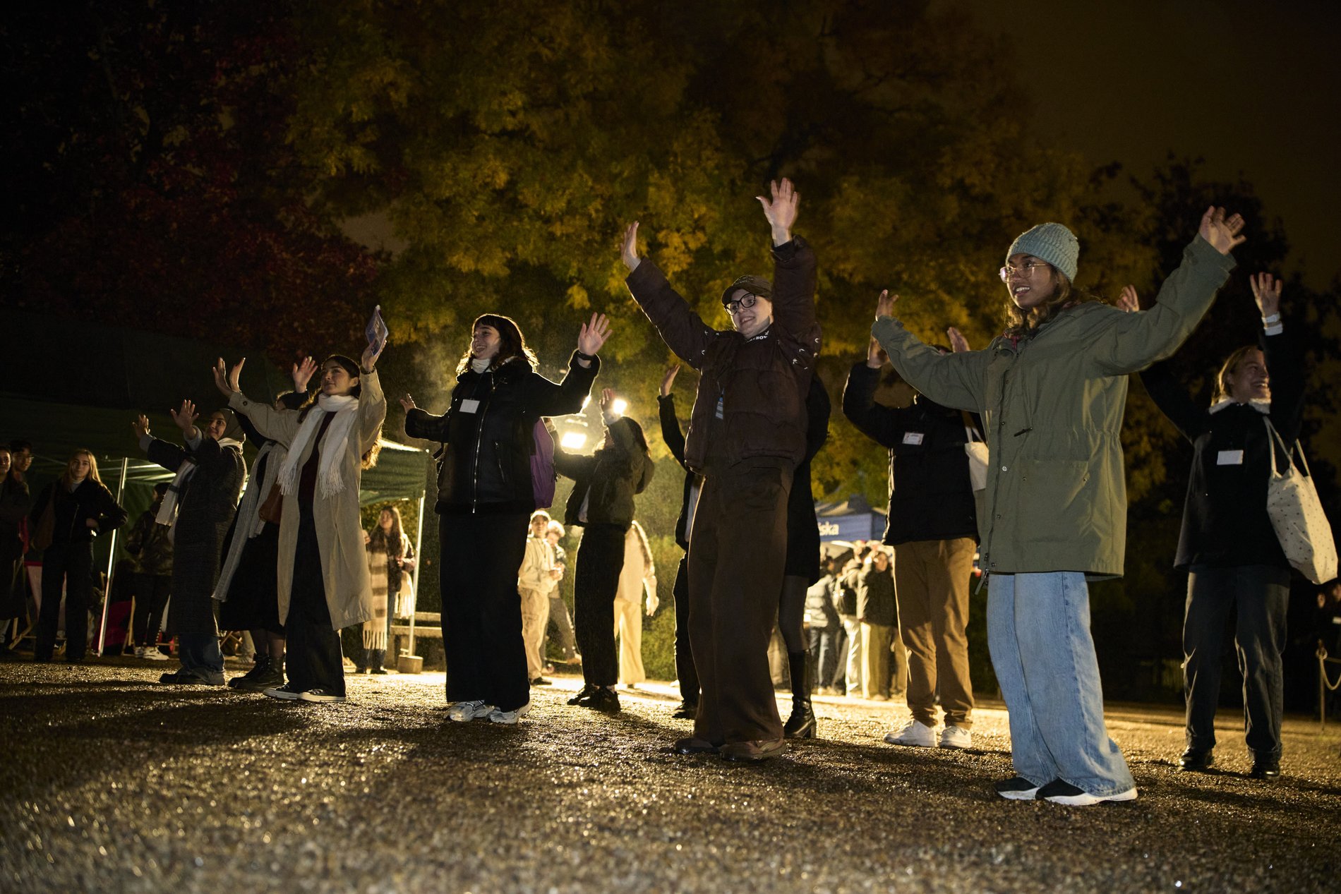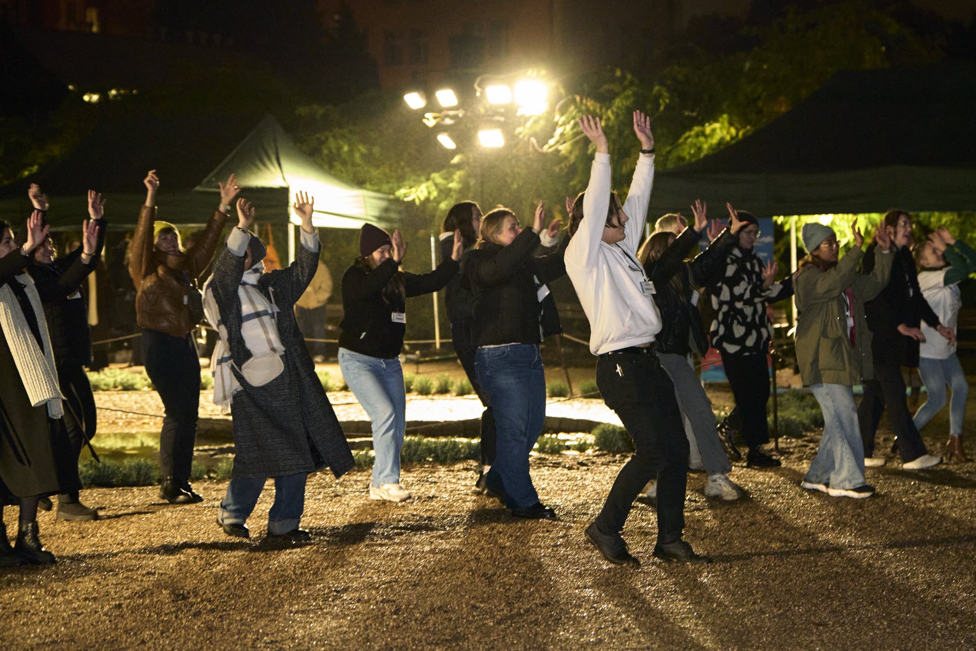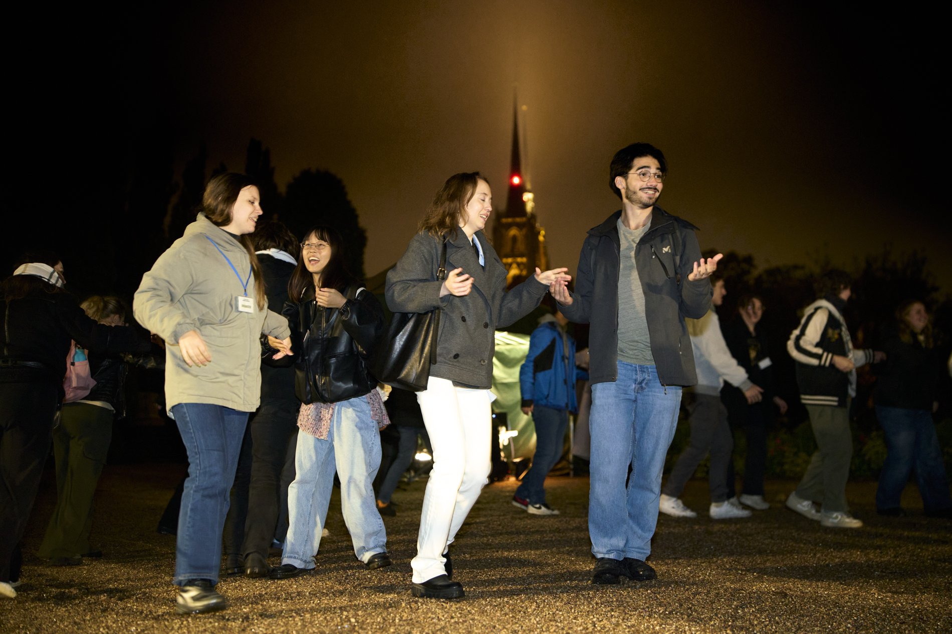 Całemu wydarzeniu towarzyszyła muzyka, a wśród studentów krążył dziennikarz Paweł Gołębski, zachęcając do wspólnej zabawy. Odtańczona została również wspólnie popularna "belgijka".