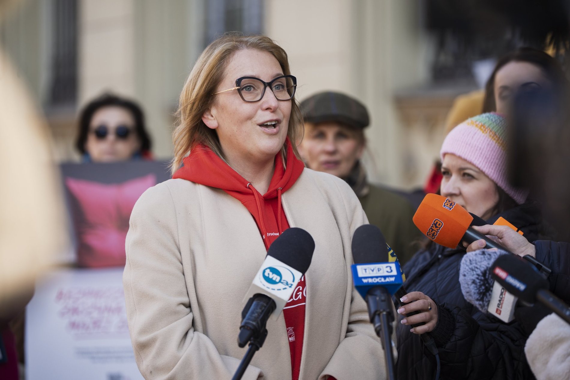 – O przemocy mówimy mało, jest to dla nas temat niewygodny, często zamiatany pod dywan, ale teraz mamy okazję zastanowić się nad tym, jak o tej przemocy mówimy. Ile razy słyszeliśmy na przykład o 15-latce, którą widzieliśmy na proteście: dzieciak, co ona tam właściwie robi? Chwilę później ta sama 15-latka, wykorzystywana przez starszego mężczyznę, nagle okazuje się już "młodą kobietą" – wytyka Anna Kołodziej, radna Rady Miejskiej Wrocławia.