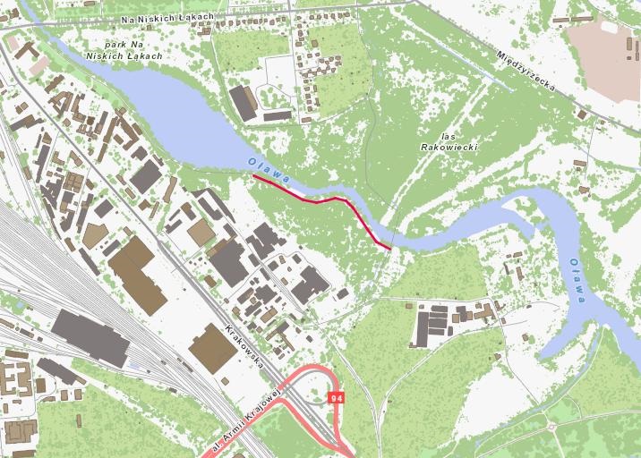Ścieżka rowerowa wzdłuż rzeki Oławy od Kładki Siedleckiej w kierunku nowo powstałej Promenady Oławy – 450 m / 2,5 m szer., nawierzchnia asfalt - załącznik 3a