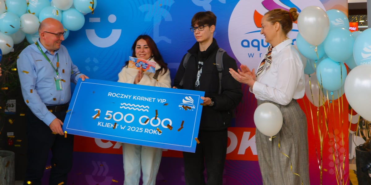 Szczęśliwą, 2,5-milionową klientką Aquaparku Wrocław okazała się pani Natalia Dashko, która z 14-letnim synem, Maksymem, przyjechała do Wrocławia z Kołobrzegu.