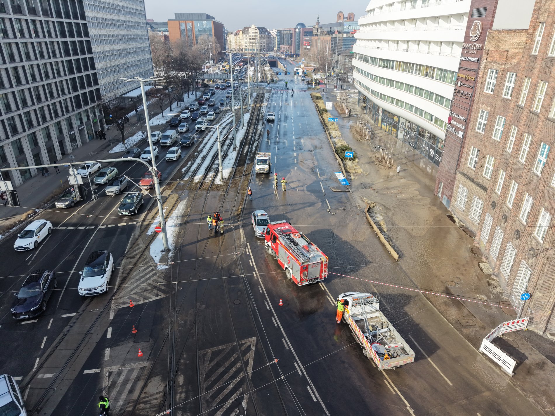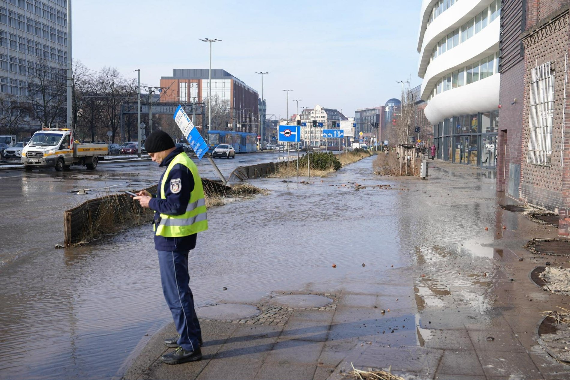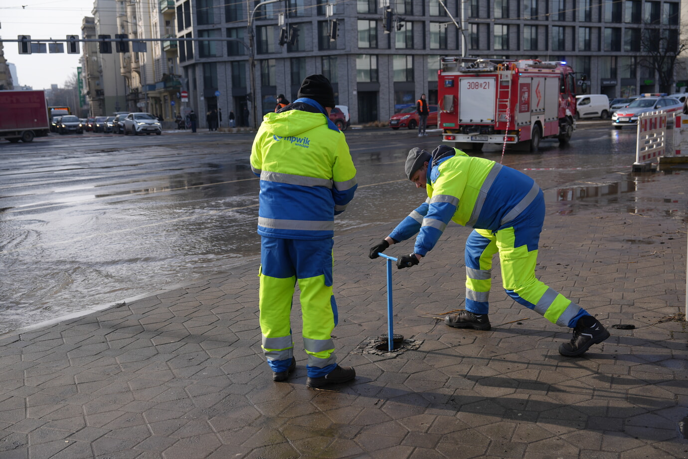 – Na ul. Traugutta przy OVO nastąpiła awaria magistrali DN1000. Na miejscu pracują trzy Brygady, do tej pory udało zamknąć się 3 z 6 zasuw w tym obszarze. Teraz czekamy na to, by opadła woda w miejscu awarii i wówczas zostanie zamknięta kluczowa zasuwa. Na miejscu ruchem kieruje Policja, wspiera na także Straż Pożarna. Prosimy o zachowanie szczególnej ostrożności w tym miejscu — informuje MPWiK Wrocław.