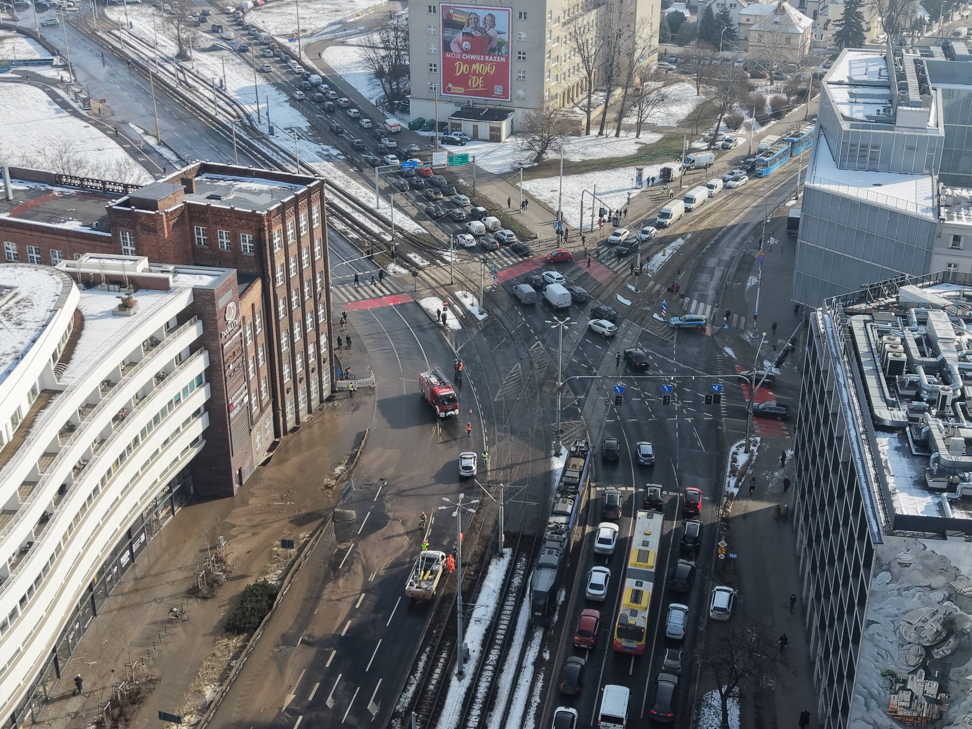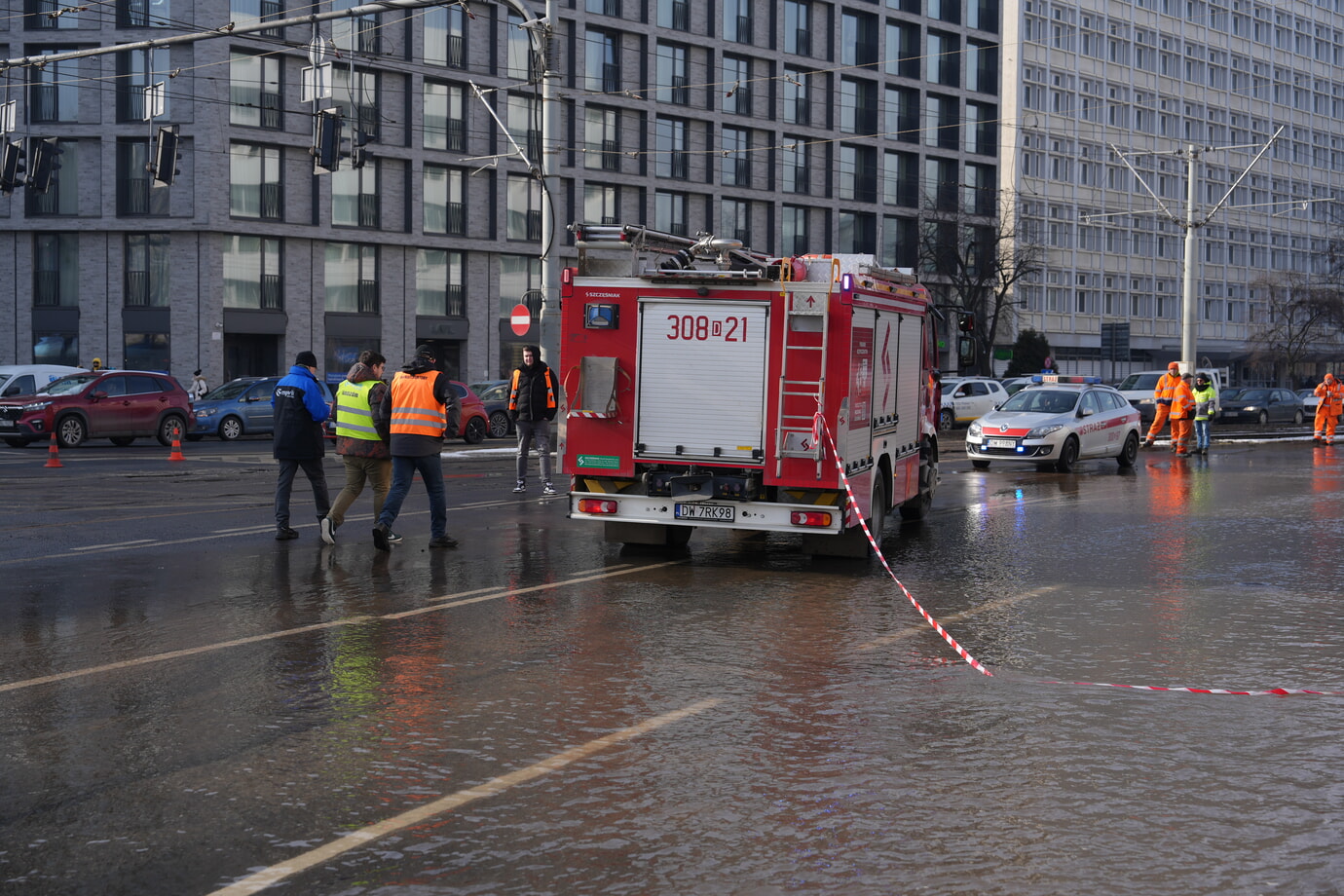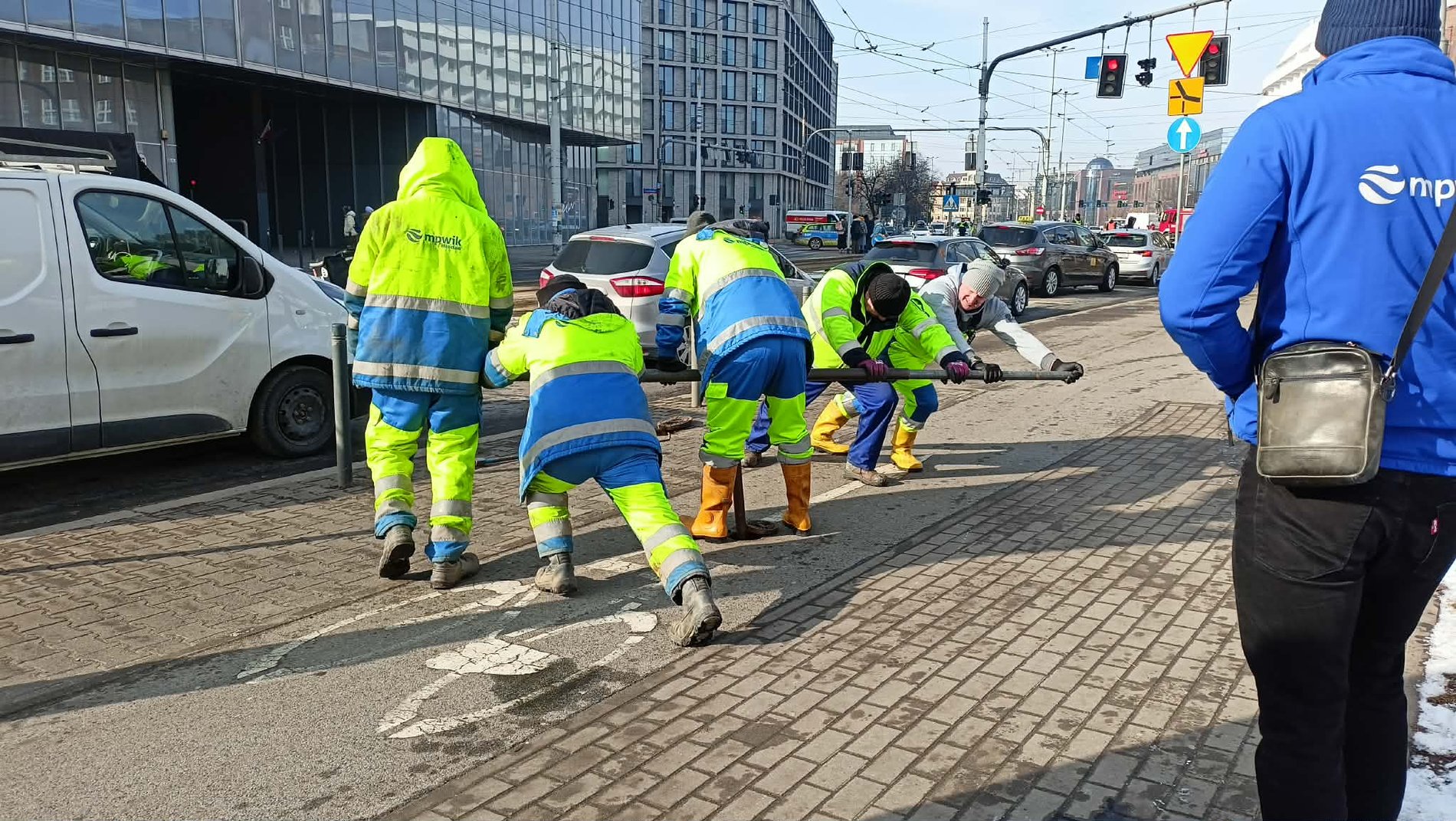 – Na ul. Traugutta przy OVO nastąpiła awaria magistrali DN1000. Na miejscu pracują trzy Brygady, do tej pory udało zamknąć się 3 z 6 zasuw w tym obszarze. Teraz czekamy na to, by opadła woda w miejscu awarii i wówczas zostanie zamknięta kluczowa zasuwa. Na miejscu ruchem kieruje Policja, wspiera na także Straż Pożarna. Prosimy o zachowanie szczególnej ostrożności w tym miejscu — informuje MPWiK Wrocław.