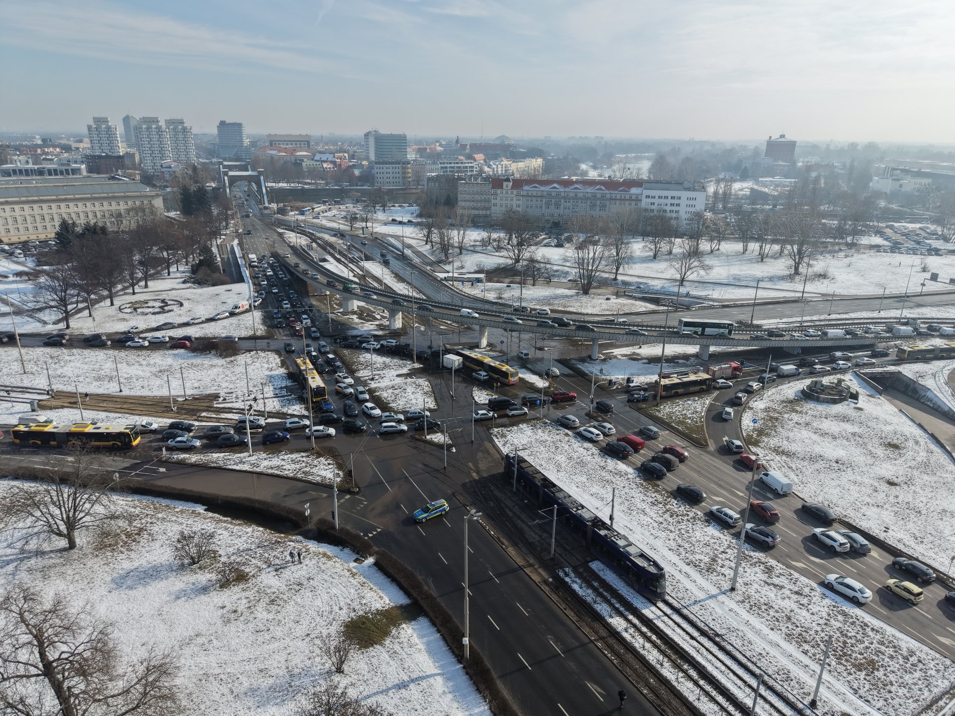 Zamknięte są skrzyżowania: Traugutta / Podwale / Oławska oraz: pl. Dominikański / Oławska/Krasińskiego.