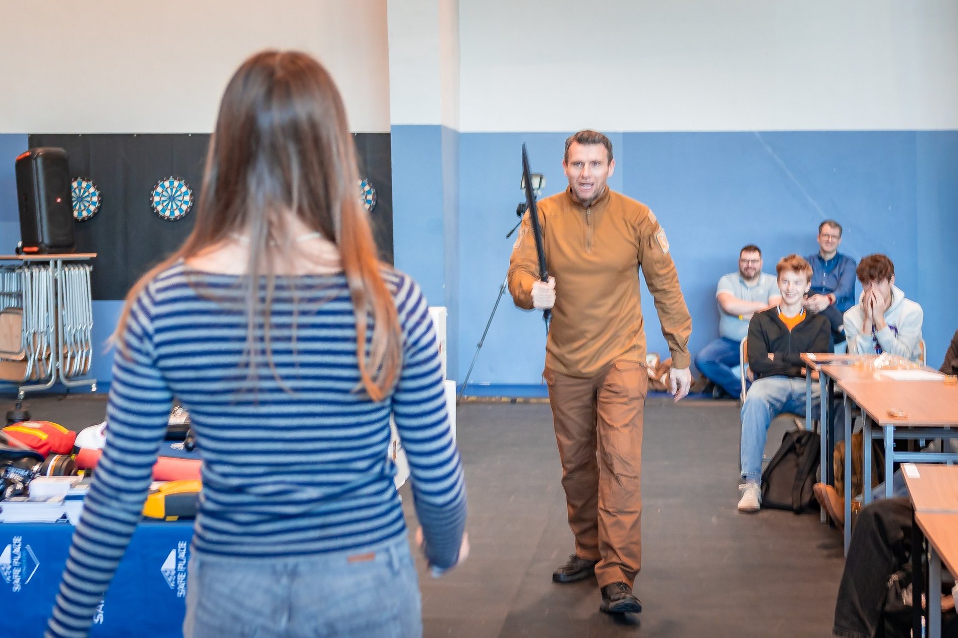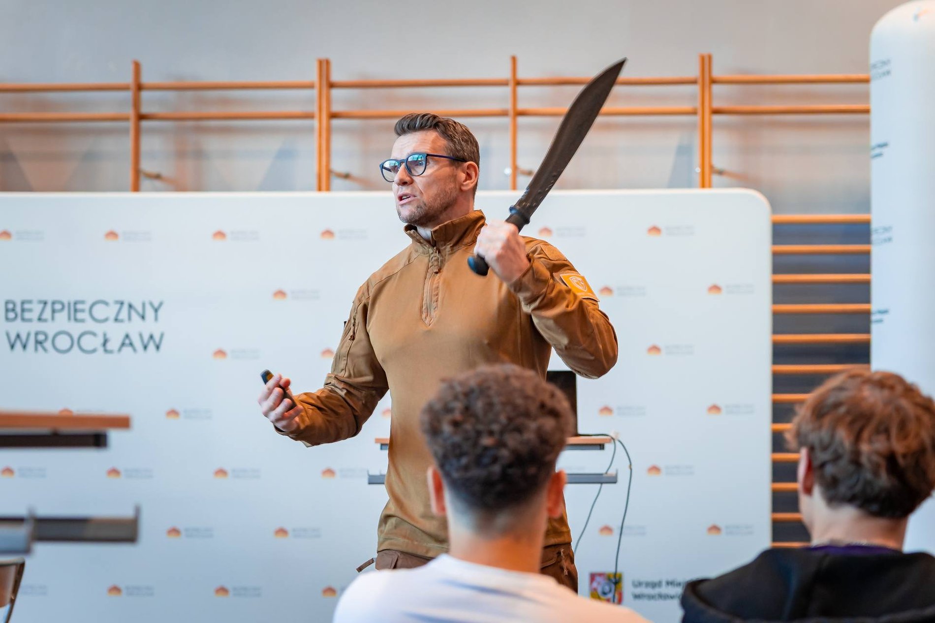 Budujemy świadomość, ćwiczmy, ale też mówimy o bezpieczeństwie. Młodzież bardzo chętnie weszła ze mną w dialog, z czego bardzo się cieszę. Zadali mnóstwo pytań, mieli swoje przemyślenia, byli kreatywni. Jestem przekonany, że kierunek tego spotkania, który obraliśmy jest właściwy, bo po pierwsze jest bezpiecznie, a po drugie interaktywnie.mjr rez. dr hab. inż. Jarosław Stelmach, główny instruktor szkolenia i Prezes Zarządu Safety Project
