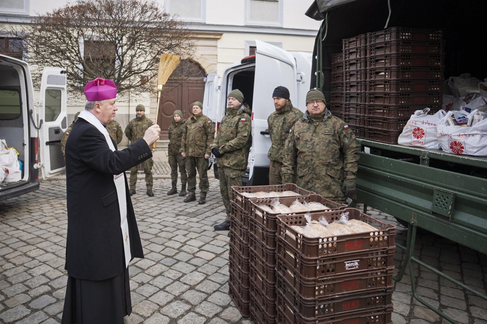 – Dziękuję wszystkim pracownikom i wolontariuszom Caritas oraz żołnierzom Dolnośląskiej Brygady Obrony Terytorialnej, którzy przygotowali te paczki świąteczne dla ubogich. Mam nadzieję, że przyniosą one choć trochę radości i wsparcia w trudnej sytuacji. W święta Bożego Narodzenia szczególnie ujawnia się dobroć naszych serc. Dziękuję także wszystkim darczyńcom oraz Miastu Wrocław, które było fundatorem paczek i dzięki któremu ta pomoc mogła dotrzeć do tak wielu osób – mówił abp Józef Kupny.