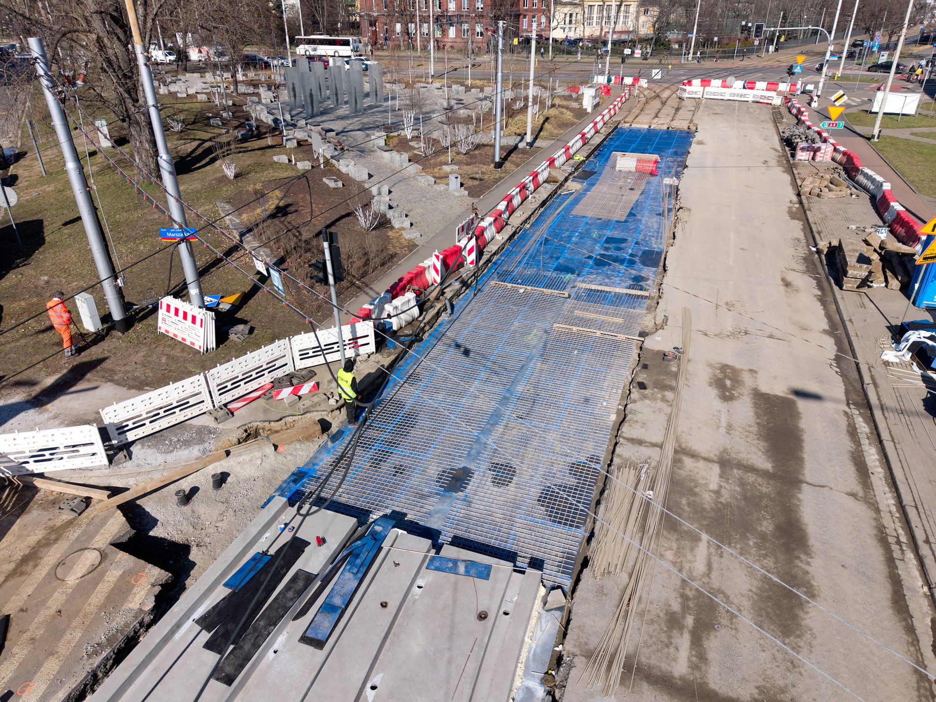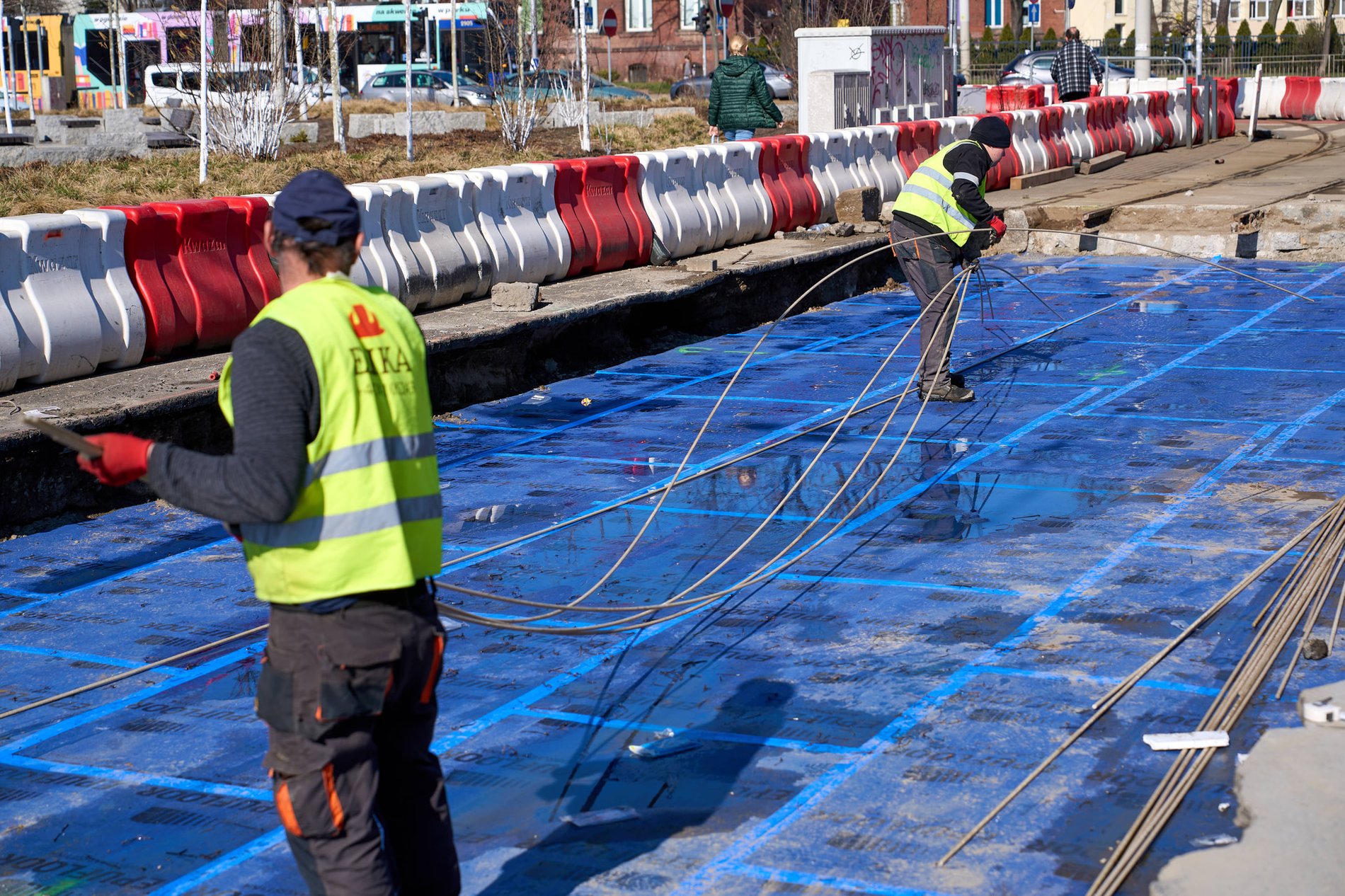 Zanim MPK przystąpiło do układania płyt, z sytuacji skorzystało MPWiK i przeprowadziło prace podziemne wymieniając ponad 120-letnią żeliwną rurę biegnącą pod torami i zastępując ją nowoczesnym wodociągiem.