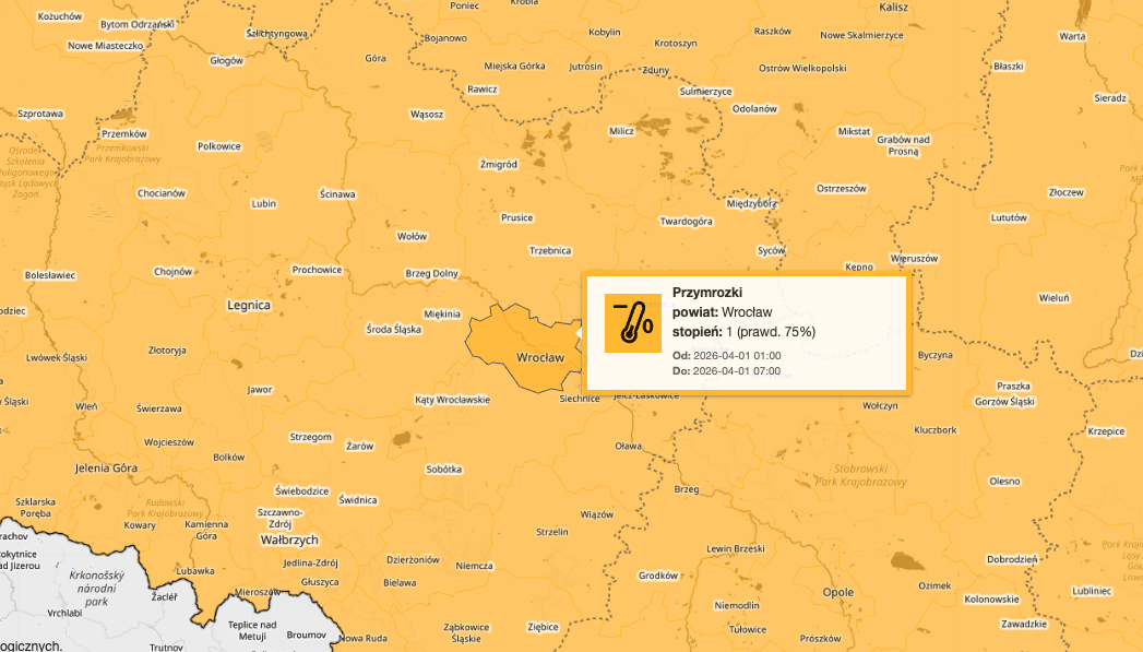 Zacznijmy od prognozowanych ostrzeżeń. Instytut Meteorologii i Gospodarki Wodnej przewiduje, że do piątku, 7:30 rano, czekają nas nocne przymrozki. I choć chcielibyśmy, aby to był Prima Aprilis, to niestety i naprawdę - ostrzeżenia 1. stopnia zaczną obowiązywać od 1 kwietnia, 1:00 w nocy. Mogą też w tym czasie wystąpić gęste mgły.