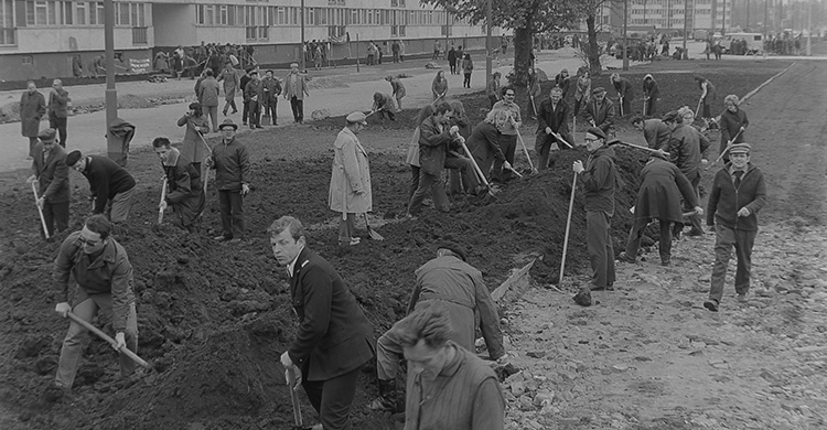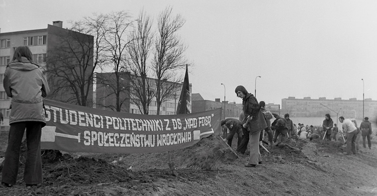 Tysiące wrocławian porządkowało place, ulice, parki i boiska sportowe. Dla tych, którzy przepracowali najwięcej godzin, był Puchar Prezydenta Miasta. A wszystko w ramach peerelowskich czynów społecznych, które można oglądać na zdjęciach Ośrodka „Pamięć i Przyszłość”.