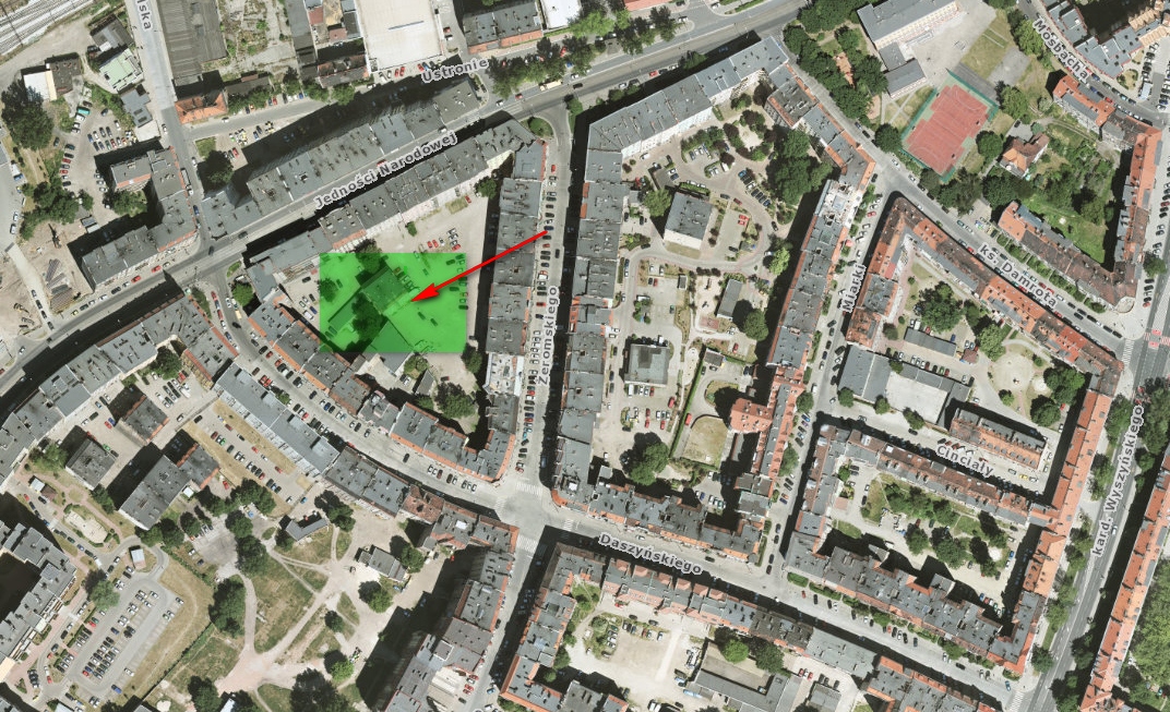 – Wśród wielu nieprzyjemnych napisów, które oglądałam w bramach i na klatkach schodowych, przewijało się też dość często słowo: kocham – wyjaśnia Elżbieta Jabłońska. Teraz mieszkańców ma inspirować dziesięciometrowe siedzisko układające się w napis „kocham” z kwadratowych bloków betonu architektonicznego. Idealne również do siedzenia i rozmów, z powodzeniem można zagrać na nim w szachy. Dzieci odkryły też, że doskonale nadaje się do skakania i zabaw w ganianego.
