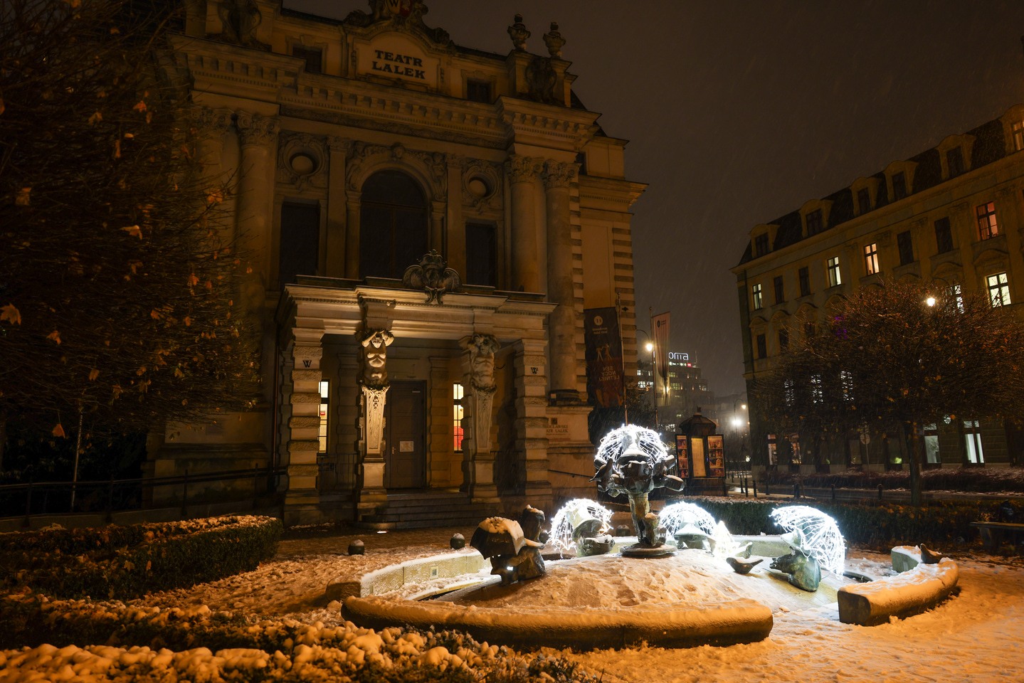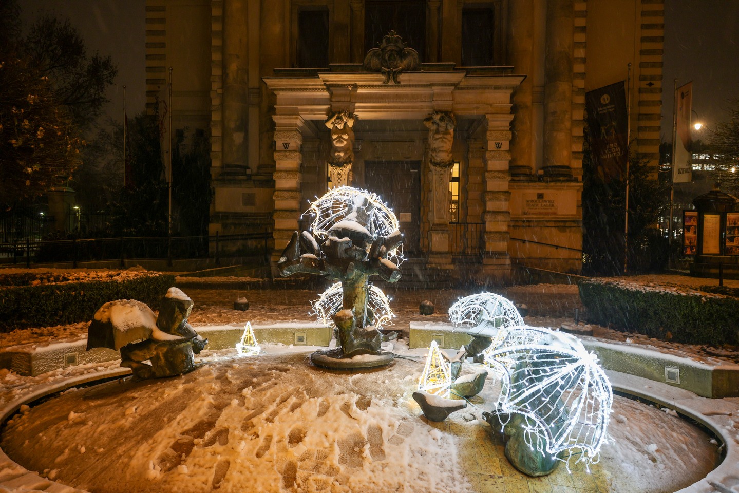 Podświetlone krasnale przed Teatrem Lalek