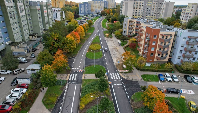 Najnowsza inwestycja na Bajana – nieco ponad kilometr między Bystrzycką a Szybowcową. Drzewieckiego – niecały kilometr między Balonową a Szybowcową. Zobaczcie zdjęcia Tomasza Hołoda.