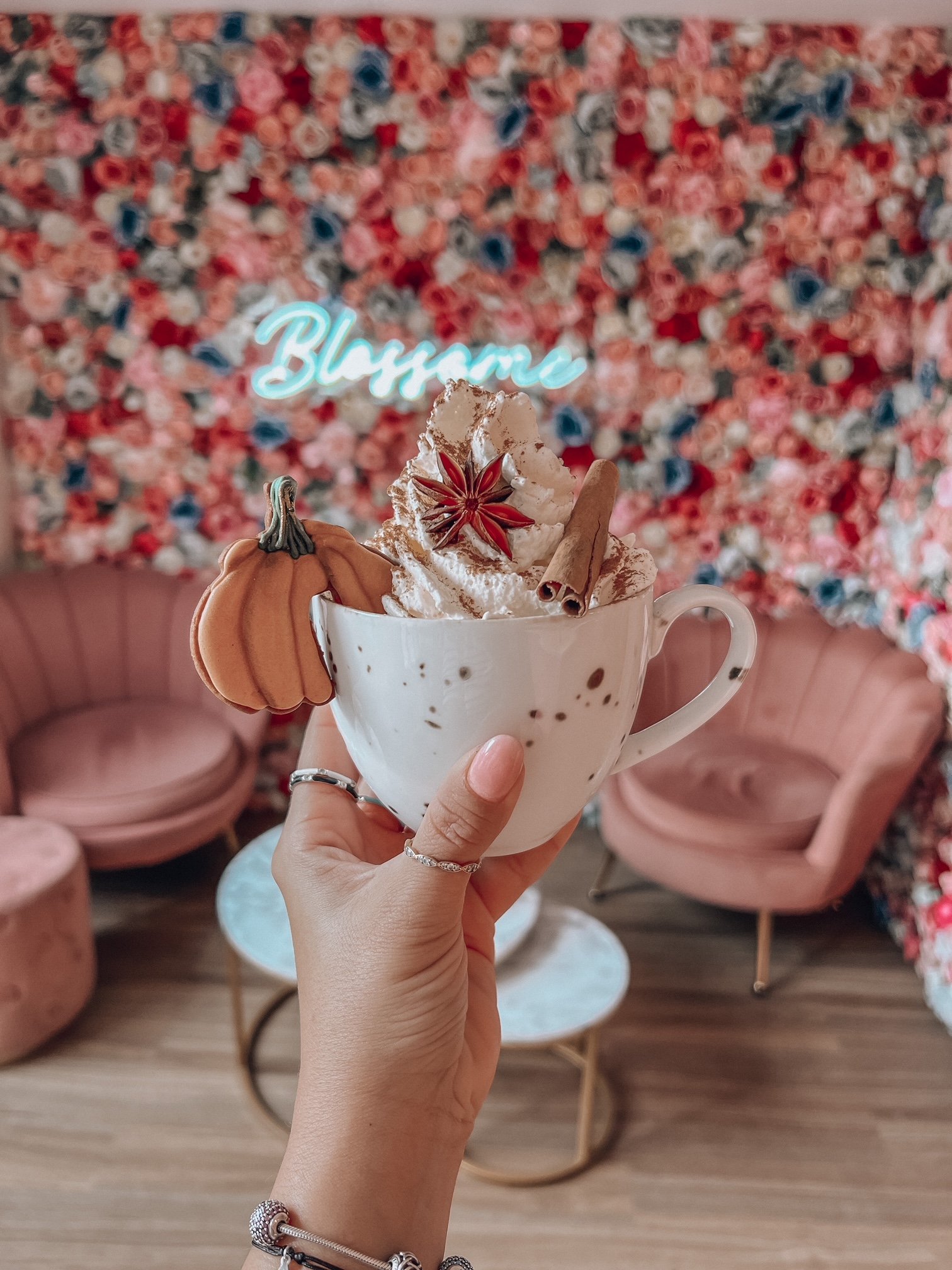 Dyniową latte wypijecie w różowej kawiarni pełnej kwiatów i uroczych dodatków – Blossome Cafe. To prawdziwa instafriendly miejscówka, której jedna z lokalizacji znajduje się w Rynku, czyli w samym centrum miasta.