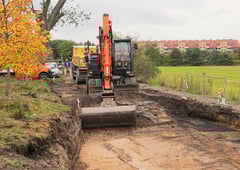 Wykonawca rozpoczął także prace przy budowie przepompowni ścieków – wykonuje wykop. Wybudowanie przepompowni jest konieczne do obsługi kanalizacji; będzie ona odbierać nieczystości i wtłaczać je do miejskiej sieci kanalizacyjnej, którą popłyną do Wrocławskiej Oczyszczalni Ścieków, gdzie zostaną oczyszczone.