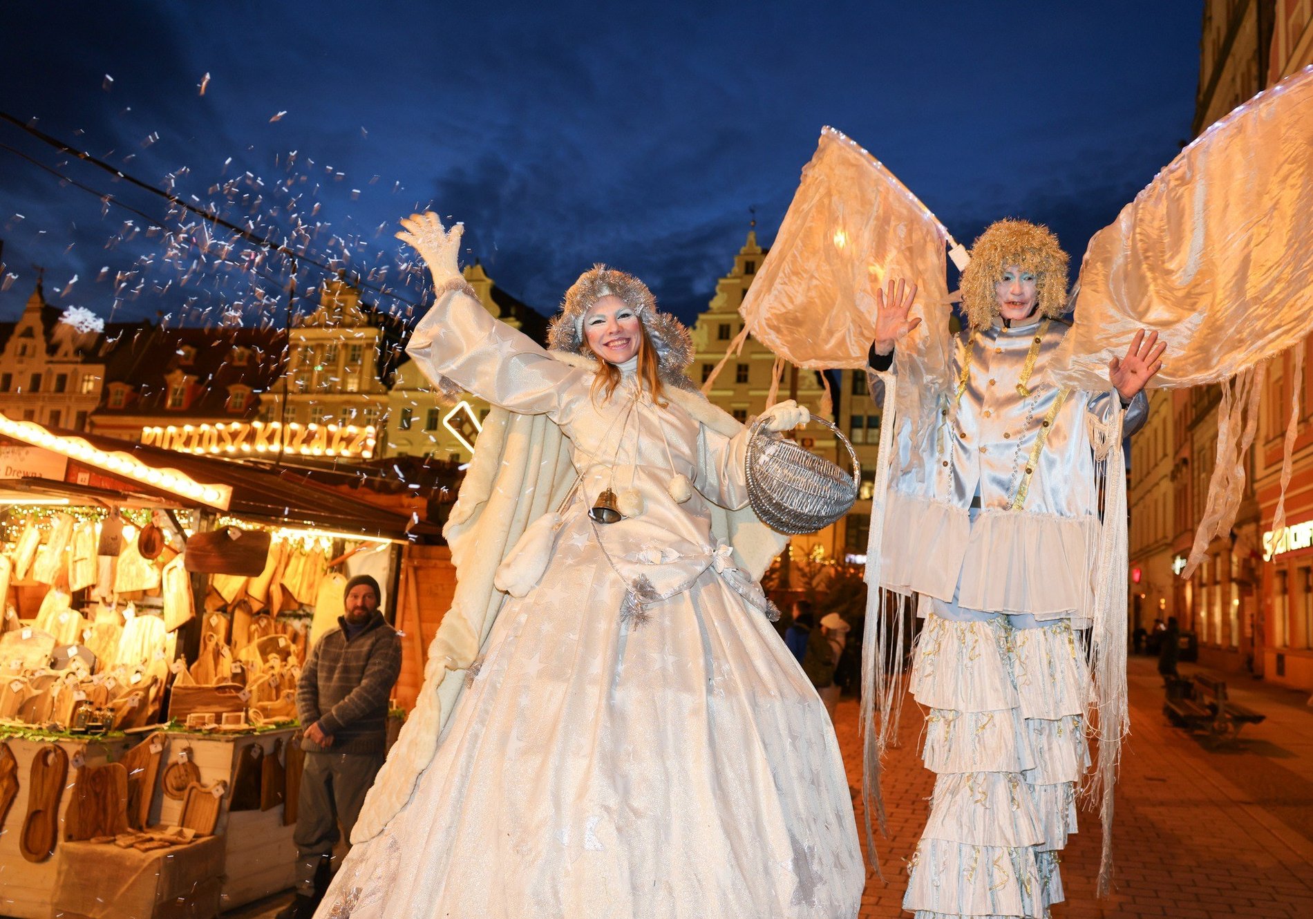 Potoki wrocławian i turystów już płyną przez drewniane domki, różowe kubeczki w dłoniach, dymiące jedzenie na talerzach, szerokie uśmiechy do zdjęć. Sześcioletnia Hania nieśmiało ogłosiła, że Wrocławski Jarmark Bożonarodzeniowy uważa za otwarty.
