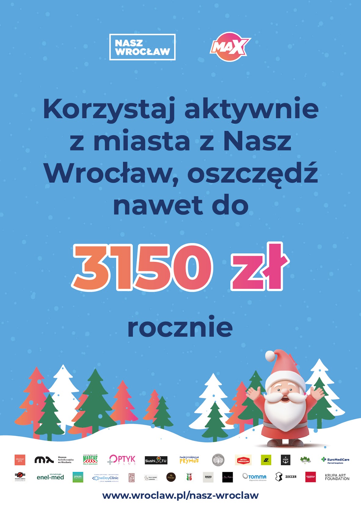 Nasz Wrocław to bezpłatny miejski program, którego celem jest zachęcenie mieszkańców do aktywnego spędzania wolnego czasu oraz udziału w życiu miasta. Mogą z niego skorzystać wszyscy, którzy płacą tu swoje podatki. W tej chwili jest to już 354 tys. osób. W minionym roku dołączyło 30 tys. nowych użytkowników.