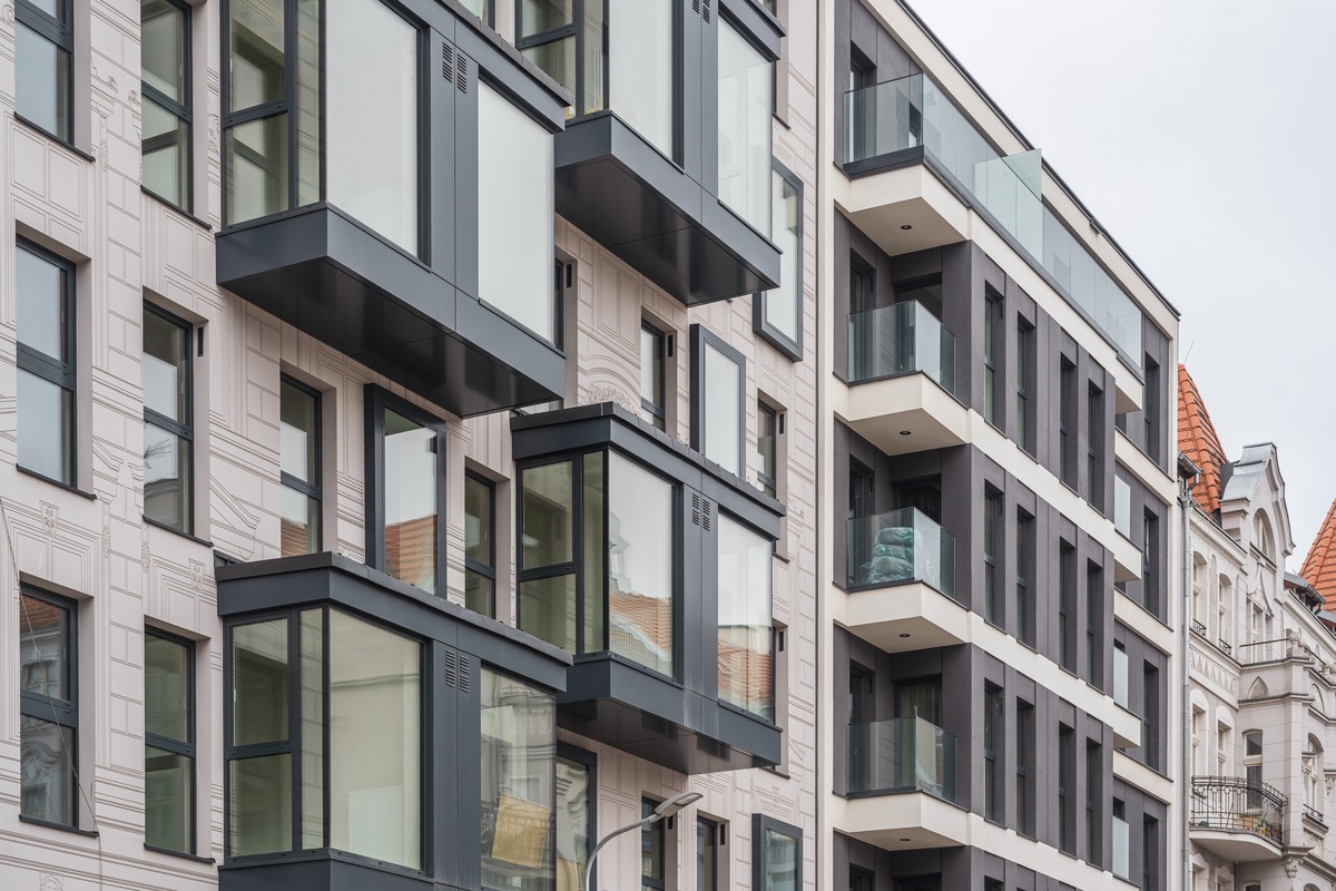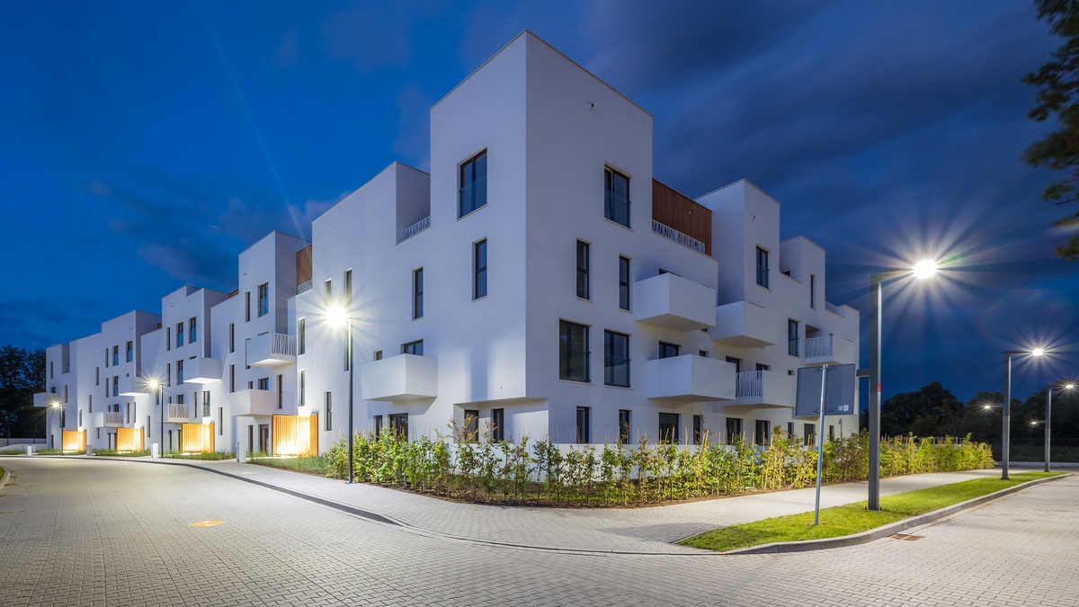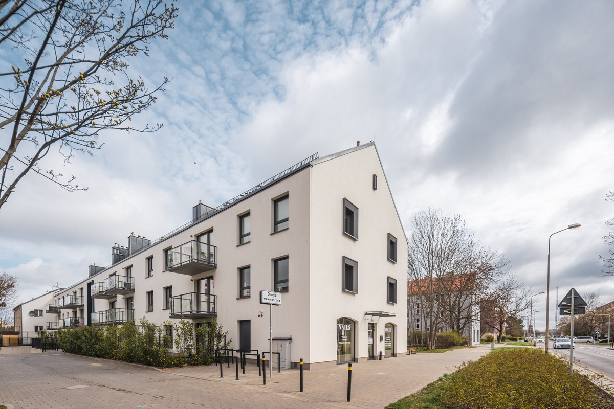 Uzupełnił bardzo spójną kompozycję zabudowy przedwojennego osiedla spółdzielni Schlesische Heimstätte, dla której projektował m.in. słynny Ernst May. Na współczesnym inwestorze powtórzenie kształtu sąsiednich, zabytkowych bloków, a nawet kolorystyki dachów wymuszał tu plan miejscowy i obszarowa ochrona konserwatorska (lokalizacja na terenie zabytkowego układu urbanistycznego osiedla Nowy Dwór). W to udało się wpleść elementy współczesne, ale w bardzo wyważony sposób.