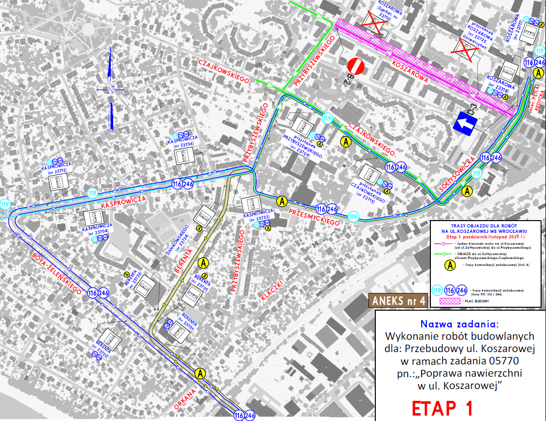 - autobusy A, 116, 119 i nocne 246 zmienią trasy od 15 października – szczegółowo rozpisaliśmy je w tej publikacji, a poniżej zostawiamy mapę.