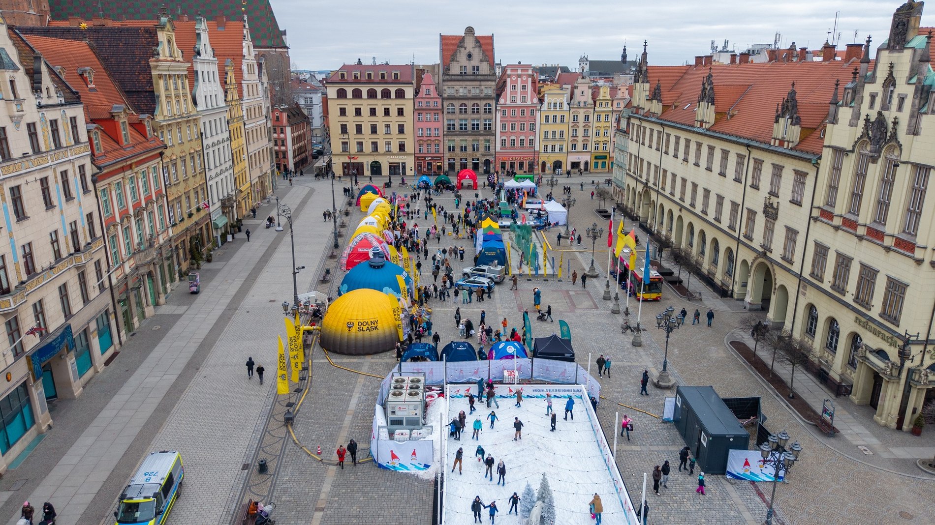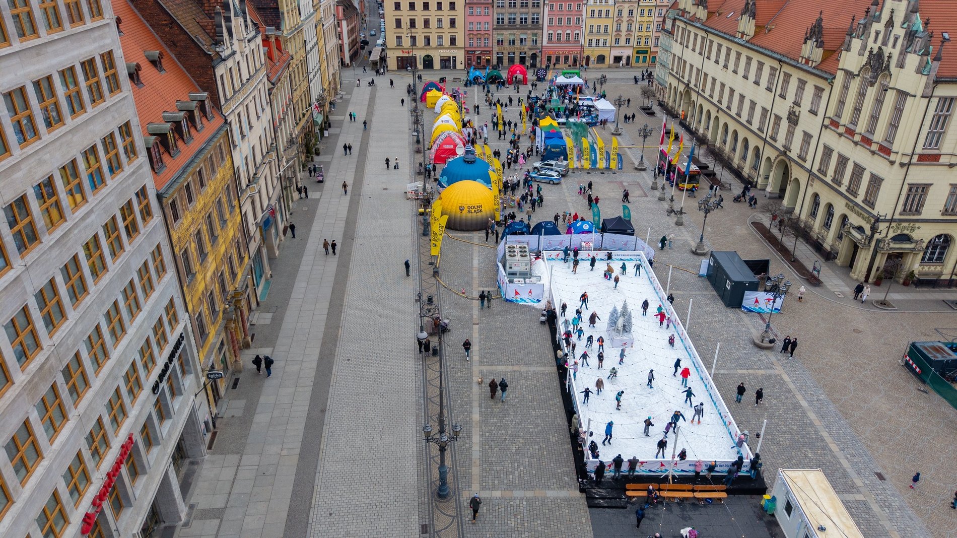 Konfetti czerwonych serduszek, lodowisko z widokiem na zabytkowe kamienice i Ratusz, mini skocznia narciarska, stoiska, warsztaty, animacje oraz konkursy z nagrodami – tak wyglądał finał zimowego sezonu w centrum Wrocławia. Rynek, który na co dzień tętni miejskim rytmem, podczas ferii zamienił się w lodową scenę i przestrzeń wspólnej zabawy dla całych rodzin.