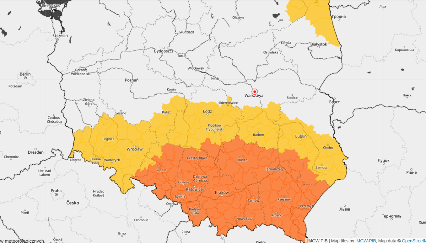 - Przebieg: Prognozowane są okresami słabe opady marznącego deszczu lub mżawki powodujące gołoledź, przemieszczające się z południa na północ regionu. Największe prawdopodobieństwo wystąpienia tych zjawisk przewiduje się w nocy 24/25.01 i rano 25.01.2026.
