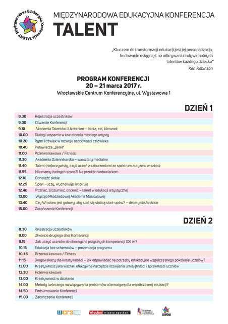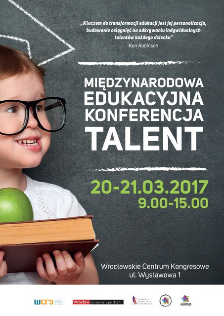 Międzynarodowa Konferencja Edukacyjna TALENT organizowana jest przez Departament Edukacji UM Wrocławia i Wrocławskie Centrum Rozwoju Społecznego w ramach Akademii Talentów i Uzdolnień, projektu powołanego w 2015 r. przez Departament Edukacji.