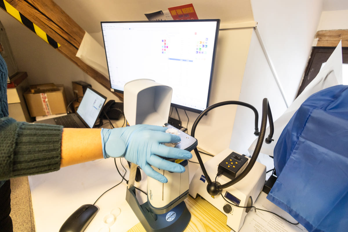 Pracownicy Muzeum podkreślają, że mikroskop stereoskopowy Zeiss Stemi 508 doc oraz ręczny spektrometr fluorescencji rentgenowskiej Bruker S1 Titan 800 to sprzęt najwyższej klasy.