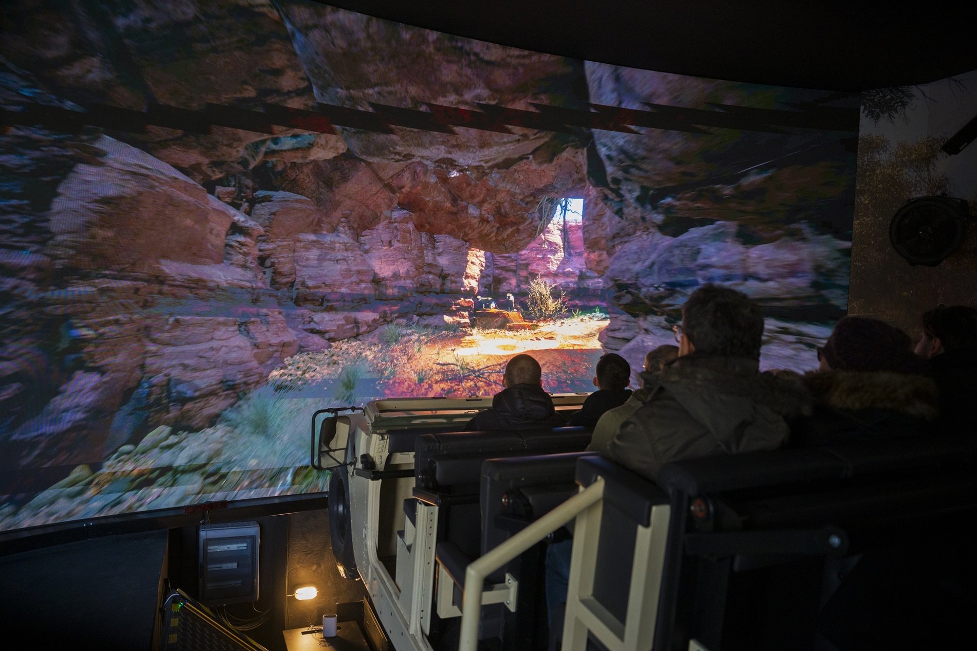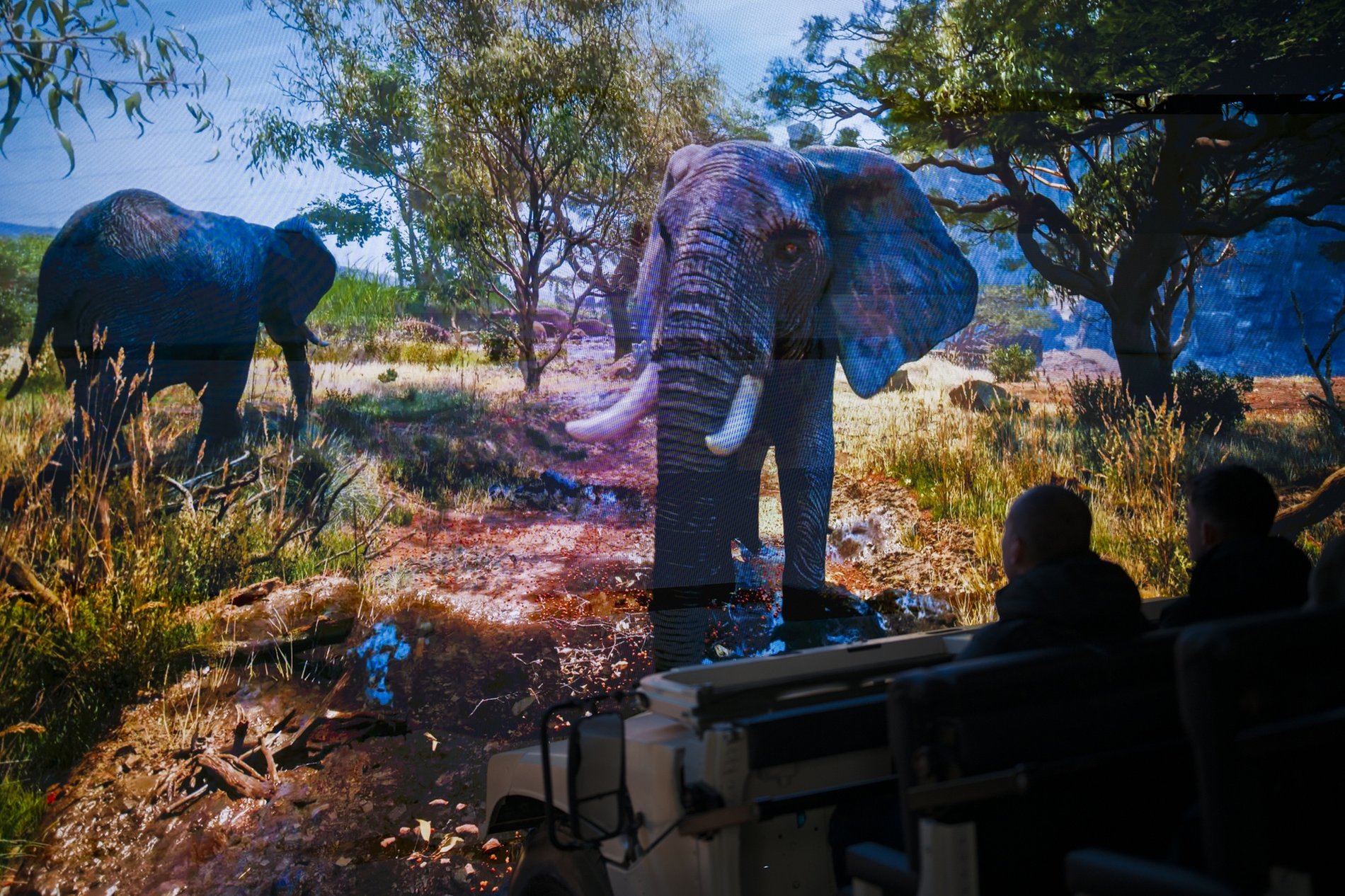 Samochód porusza się symulując wrażenia, jakie mogliby odczuwać pasażerowie, gdyby w rzeczywistości jechali przez sawannę. Wstrząsy, przechyły są zsynchronizowane z wyświetlanym obrazem i razem podmuchami powietrza i skraplaczami tworzą sugestywną mieszankę okraszona jeszcze przestrzennym dźwiękiem.
