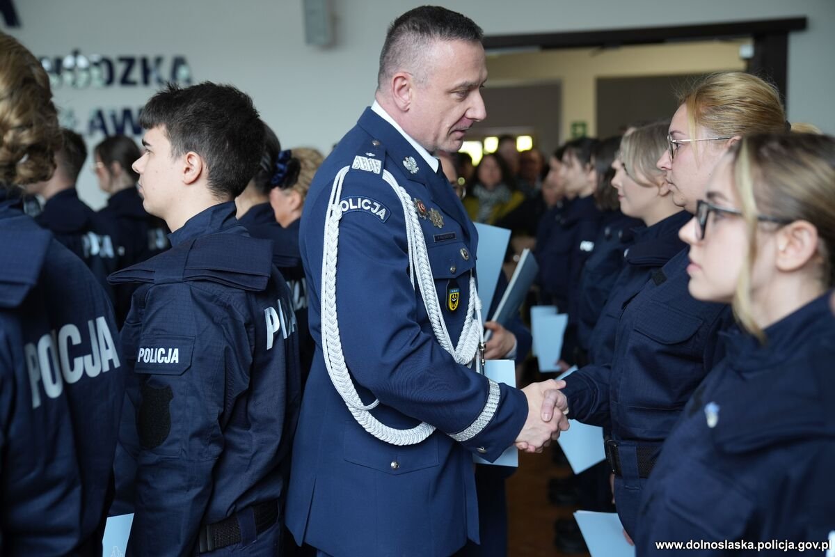 Komendant Wojewódzki Policji we Wrocławiu pogratulował nowo przyjętym policjantom wyboru tej wymagającej, ale niezwykle odpowiedzialnej drogi zawodowej. W swoim wystąpieniu podkreślił znaczenie służby publicznej oraz gotowości do niesienia pomocy innym.Komenda Miejska Policji we Wrocławiu, komunikat prasowy