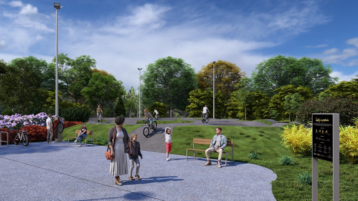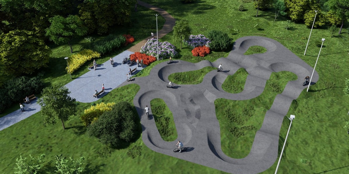 - Nowoczesny tor typu pumptrack o nawierzchni bitumicznej
