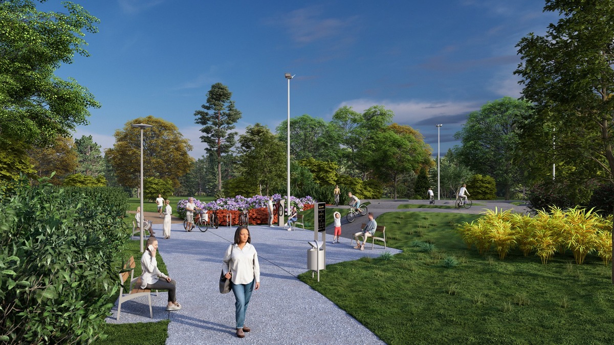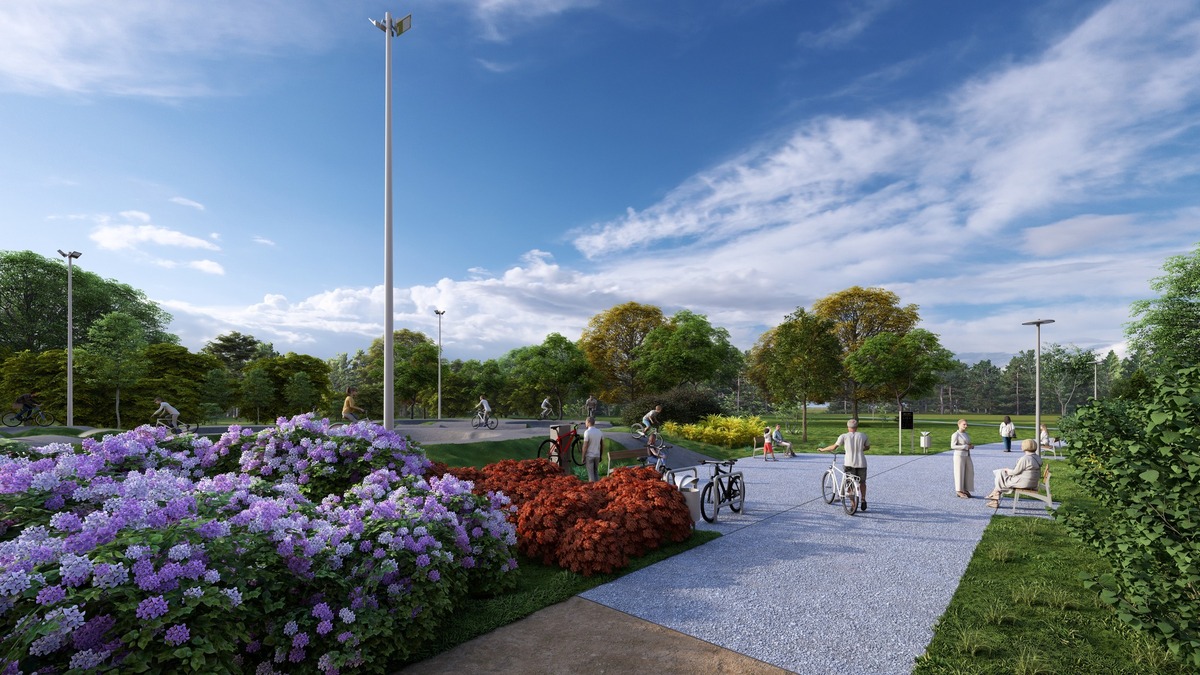 - Elementy małej architektury: ławki, kosze, stojaki na rowery, stacja naprawy rowerów.