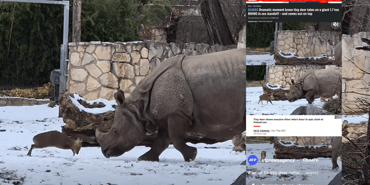 12,7 miliona wyświetleń na Instagramie, 432 tysiące polubień i to tylko na macierzystym kanale. Wynik godny podziwu zafundował wrocławskiemu zoo mundżak chiński, który kilka dni temu przypuścił szarżę na ważącą 1,7 samicę nosorożca. Kilkunastokilogramowy koziołek wyraźnie rozbawił Maruśkę, która zaczepia go i prowokuje do dalszych ataków.