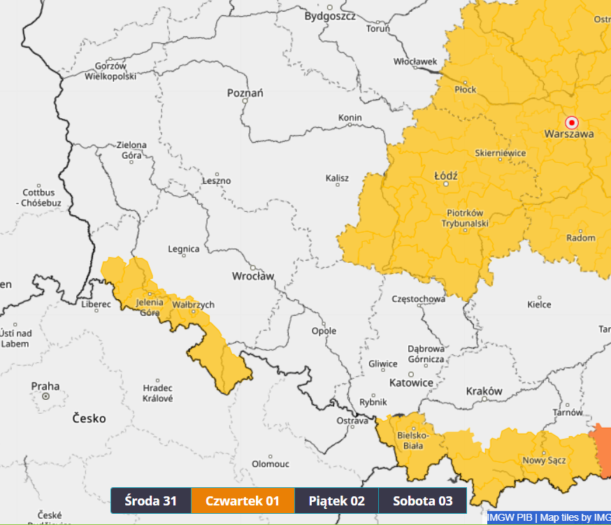 W czwartek (1 stycznia) przez większość dnia będzie pochmurnie. Miejscami mogą pojawić się słabe opady śniegu i śniegu z deszczem. Temperatura maksymalna od 0°C do 3°C. Wiatr dość silny od 30 km/h do 40 km/h, w porywach do 60 km/h.