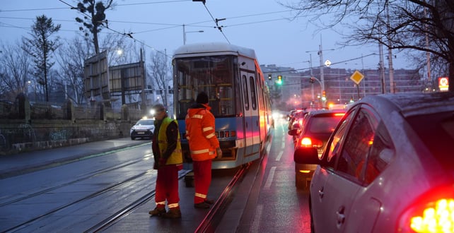 WROCŁAW Połamany pantograf przy Pułaskiego - brak przejazdu