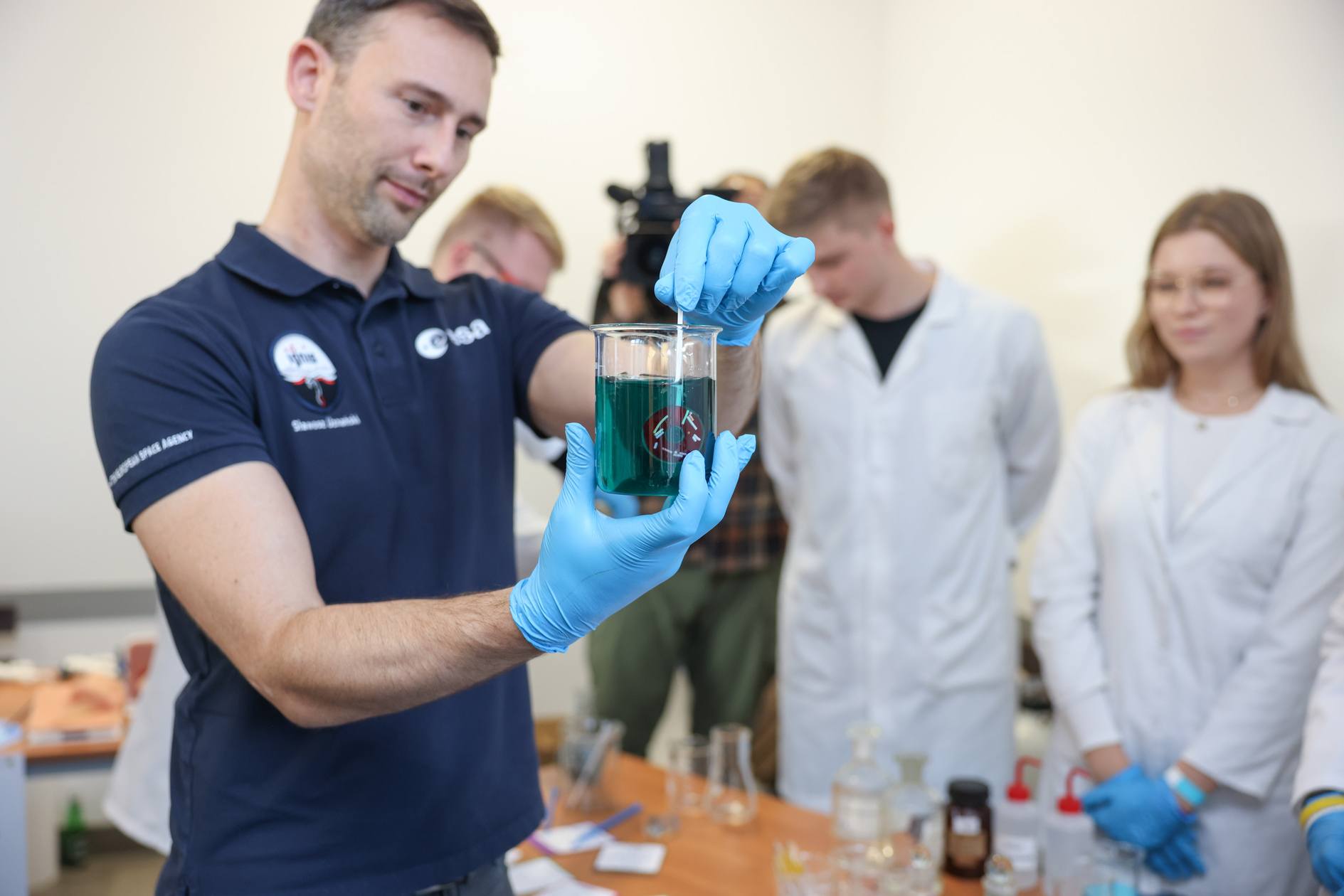 Astronauta spotkał się również ze studentami z kół naukowych wrocławskich uczelni. Rozmawiał z nimi o technologii i medycynie, rozdawał autografy (jeden z nich złożył na globusie), brał udział w ekspresowych eksperymentach i przyglądał się prezentowanym przez młodych ludzi projektom.