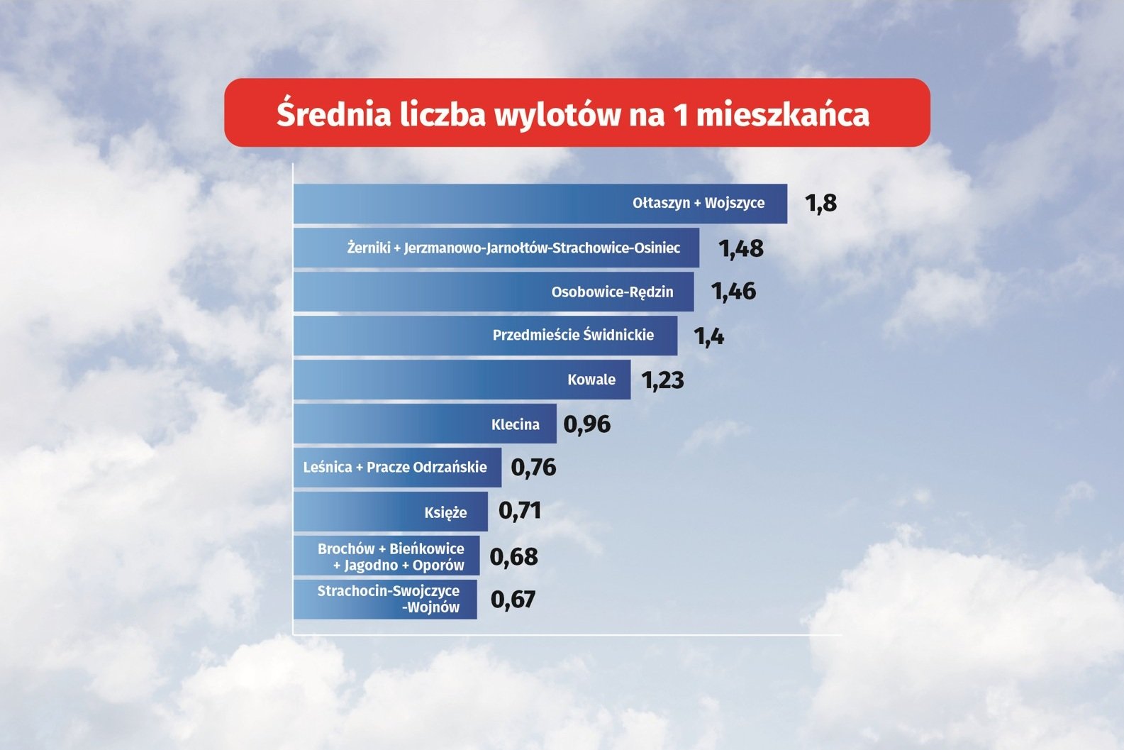 Największą liczbą podróżnych mogą pochwalić się osiedla położone stosunkowo niedaleko Portu Lotniczego Wrocław. Z Maślic w podróż wyruszyło w zeszłym roku ponad 44 tys. pasażerów, a z Leśnicy niemal 30 tys. Wysokie wyniki osiągnęły także Karłowice–Różanka i Ołtaszyn/Wojszyce – w obu przypadkach liczba pasażerów oscyluje w okolicach 28 tys.