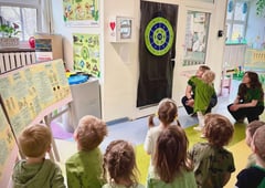 Wystawa „Portrety z natury” prezentuje prace plastyczne dzieci w wieku od 3 do 6 lat, powstałe w ramach zajęć artystycznych połączonych z edukacją ekologiczną. Wszystkie dzieła wykonane zostały samodzielnie przez przedszkolaków z wykorzystaniem materiałów pochodzących z recyklingu, a następnie starannie oprawione przez nauczycielki poszczególnych grup.
