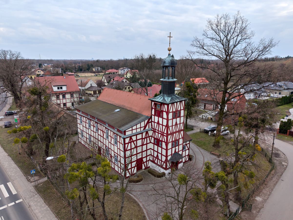 <p>Pracze Odrzańskie, widok z drona. Na zdjęciu kości&oacute;ł pw. św. Anny.</p> Oleksandr Poliakovsky