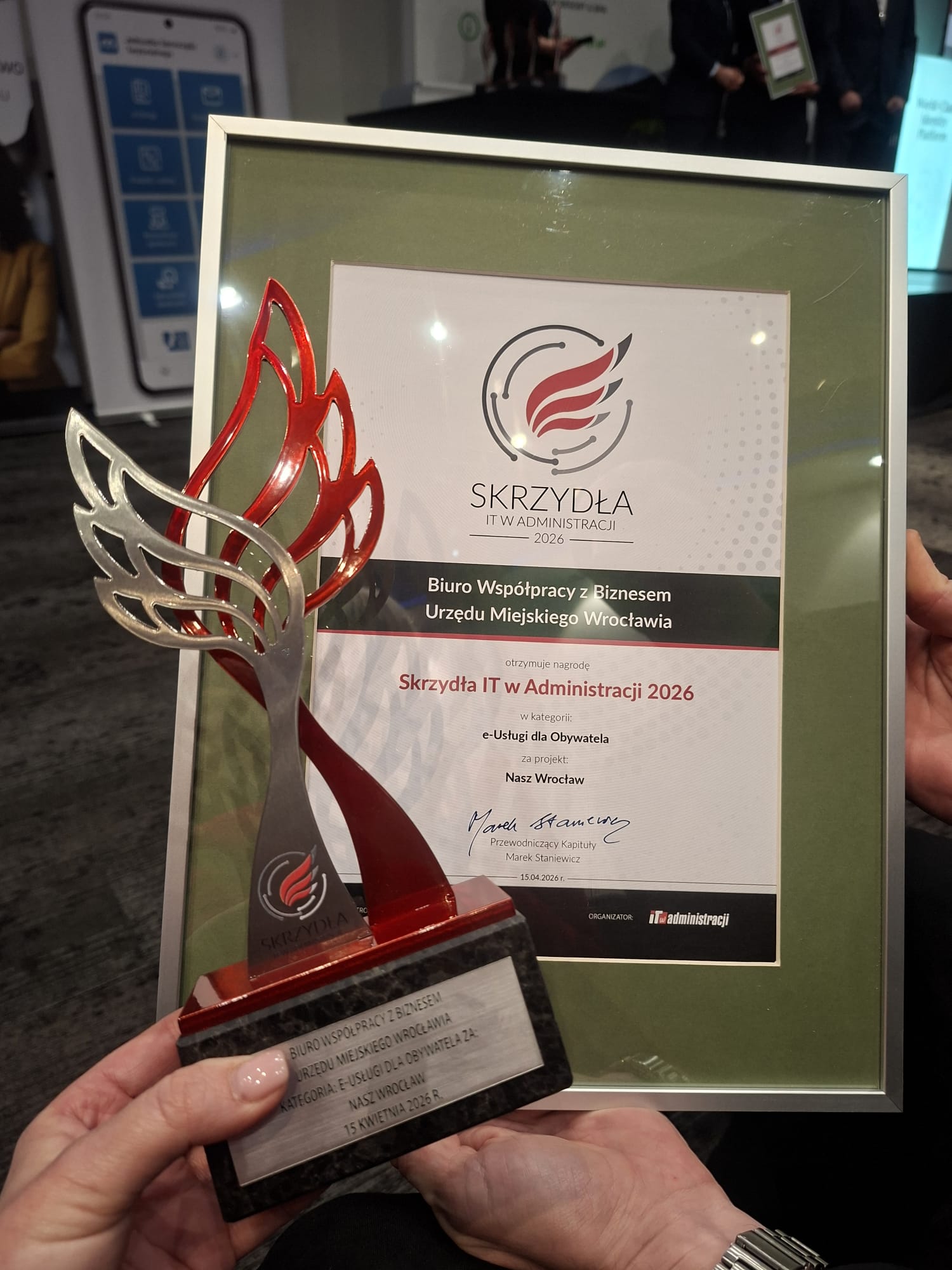 Nagroda „Skrzydła IT w Administracji” to nie tylko prestiżowe wyróżnienie - to potwierdzenie, że Wrocław konsekwentnie buduje nowoczesne, dostępne i realnie użyteczne usługi cyfrowe dla mieszkańców. Aplikacja „Nasz Wrocław” została doceniona w kategorii „e-Usługi dla obywatela” - i trudno się dziwić. To rozwiązanie, które nie tylko porządkuje dostęp do miejskich funkcji, ale też aktywnie wspiera codzienne życie użytkowników. Oferuje dostęp do benefitów i programów miejskich, wzmacnia lokalną tożsamość i zachęca do większego zaangażowania w życie miasta.Małgorzata Krzeszowska, dyrektor Biura Współpracy z Biznesem