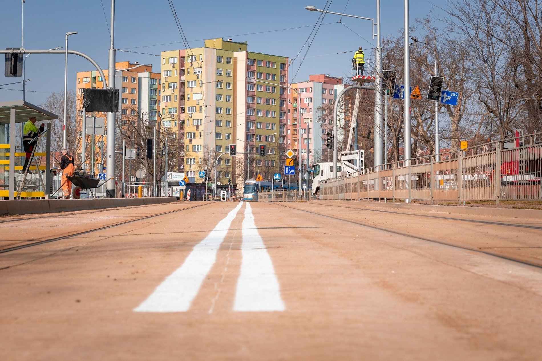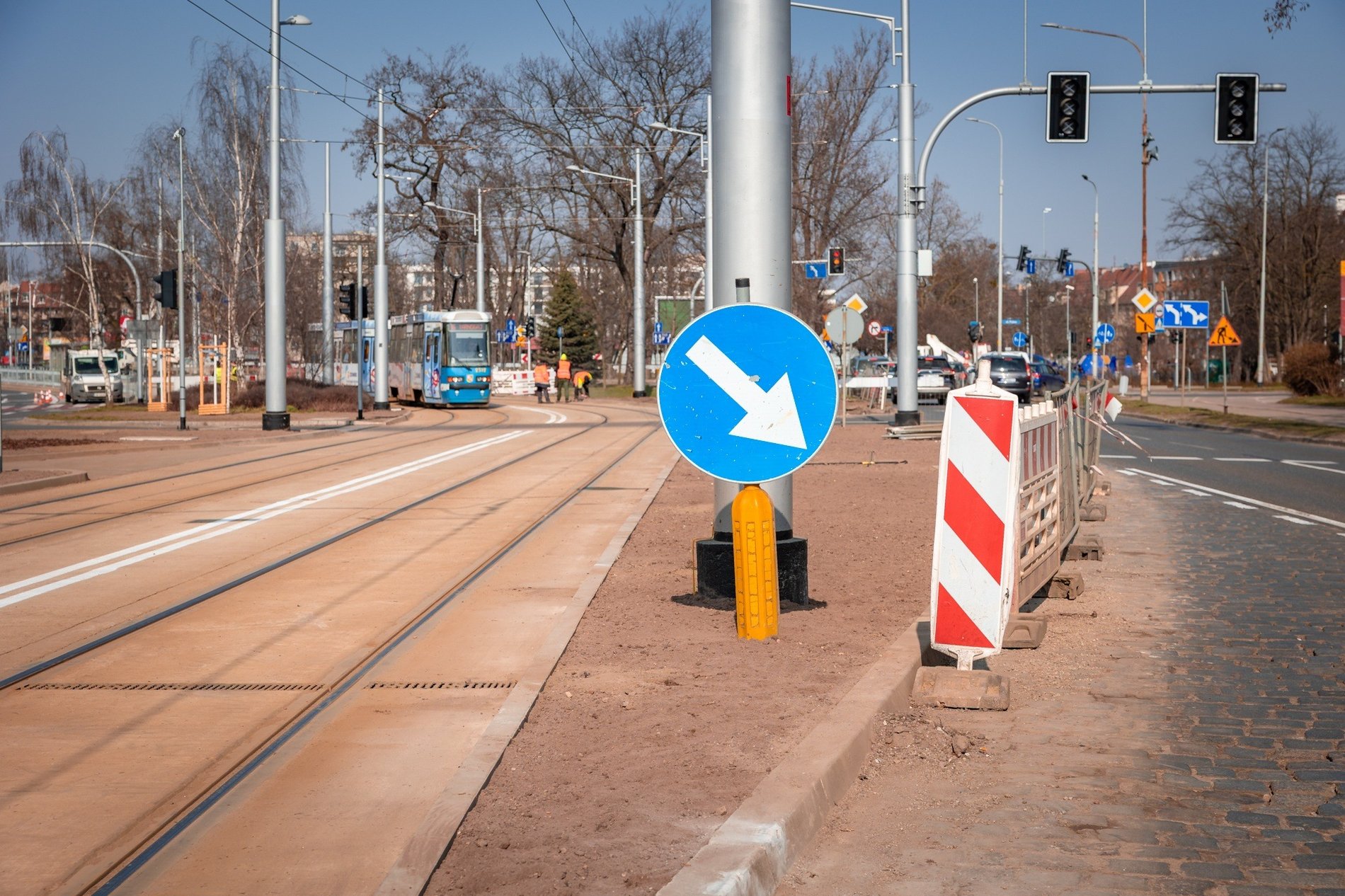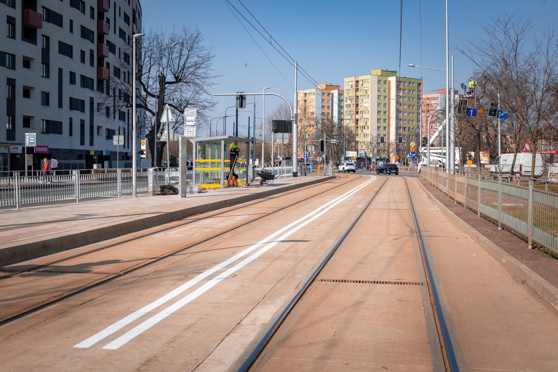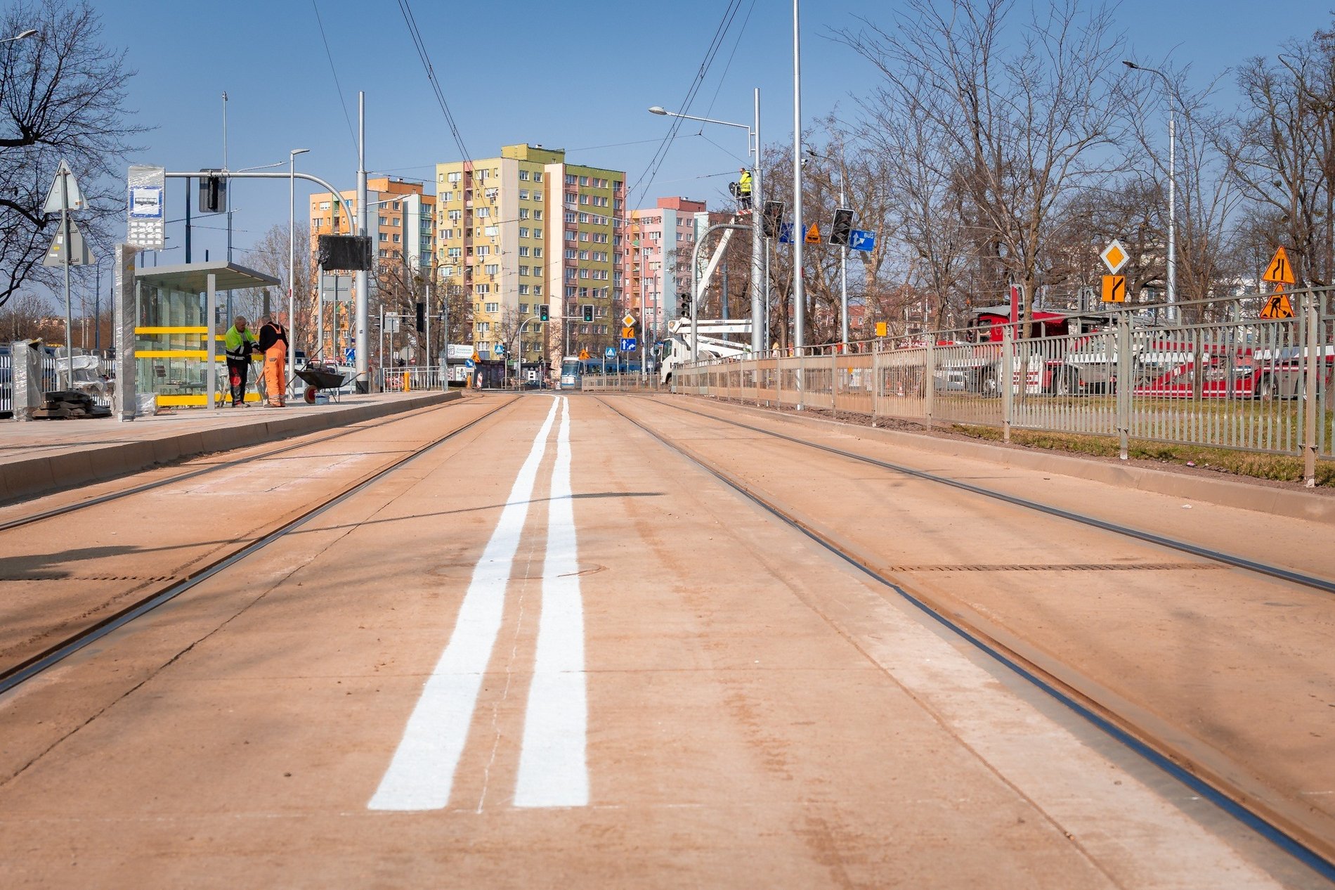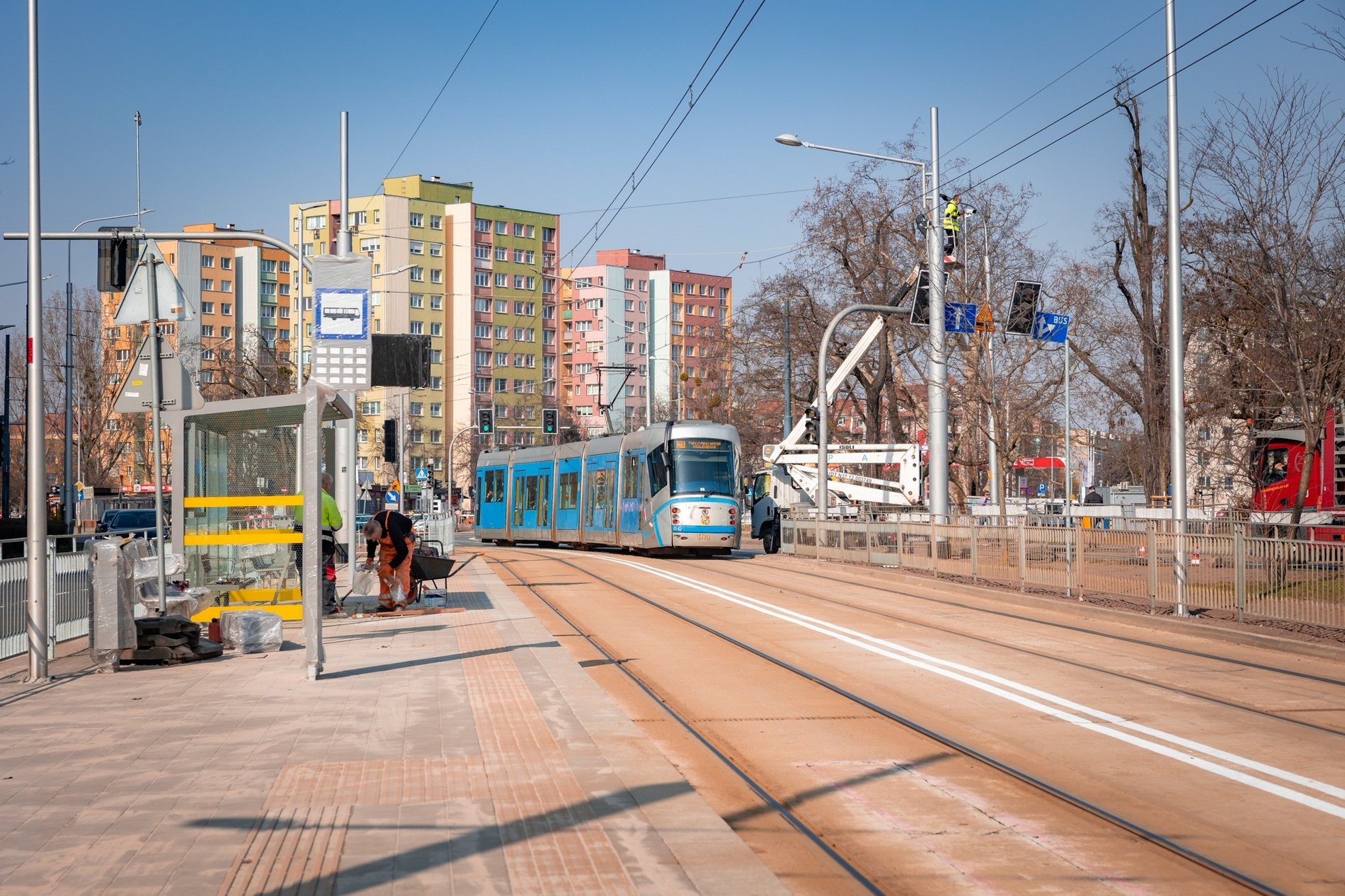 Jak informują Wrocławskie Inwestycje, w ramach przedsięwzięcia usunięto kolizje z kablami średniego napięcia i gazociągiem oraz wybudowano zjazd dla autobusów z torowiska na jezdnię.